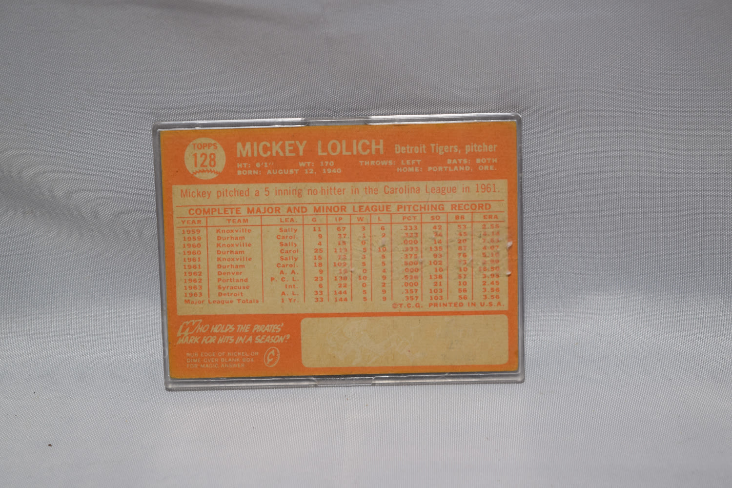 MIKEY LOLICH BASEBALL CARD