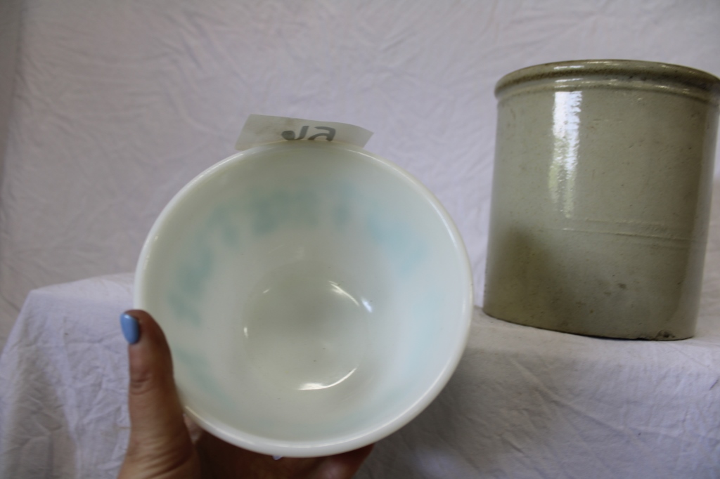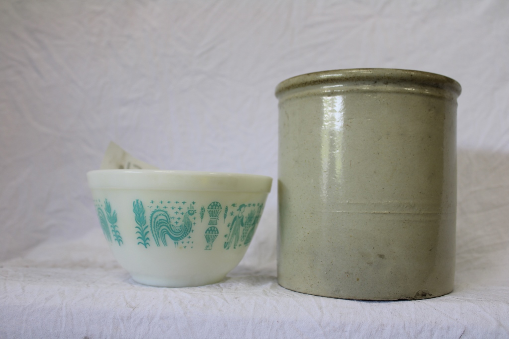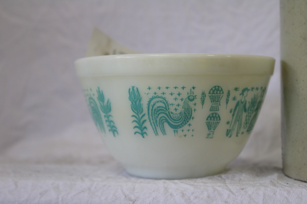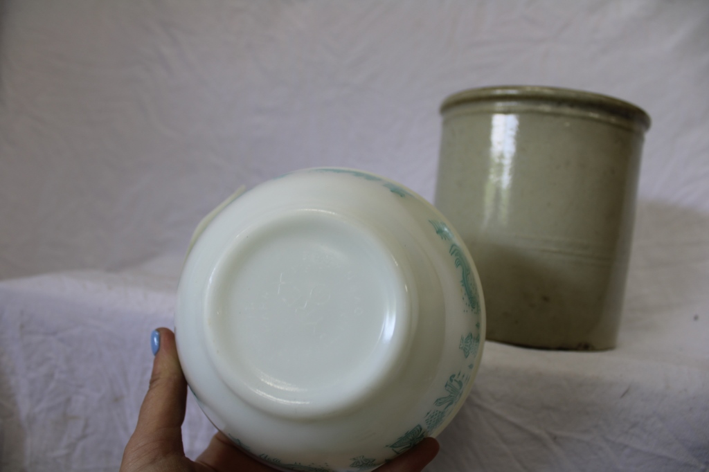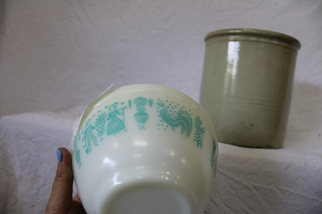 PYREX BLUE CHICKEN BOWL AND SMALL CROCK