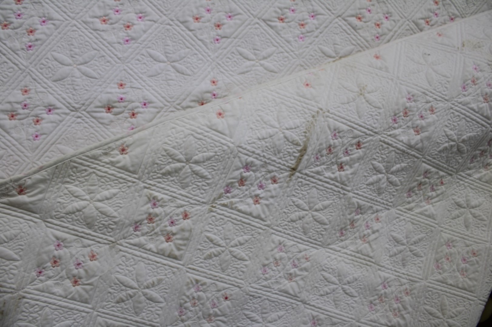 FULL/QUEEN SIZE QUILT W/ PINK/PURPLE FLOWERS