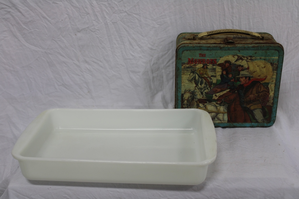 THE MONROES VINTAGE LUNCHBOX AND PYREX PAN