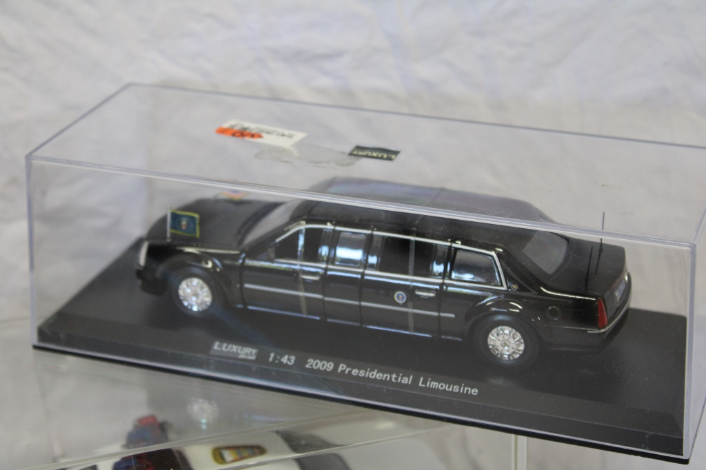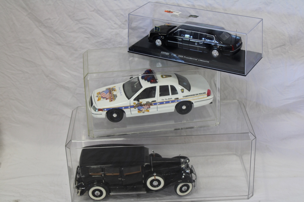 PRESIDENTIAL LIMOUSINE, VINTAGE CAR, ALL IN DISPLAY CASES
