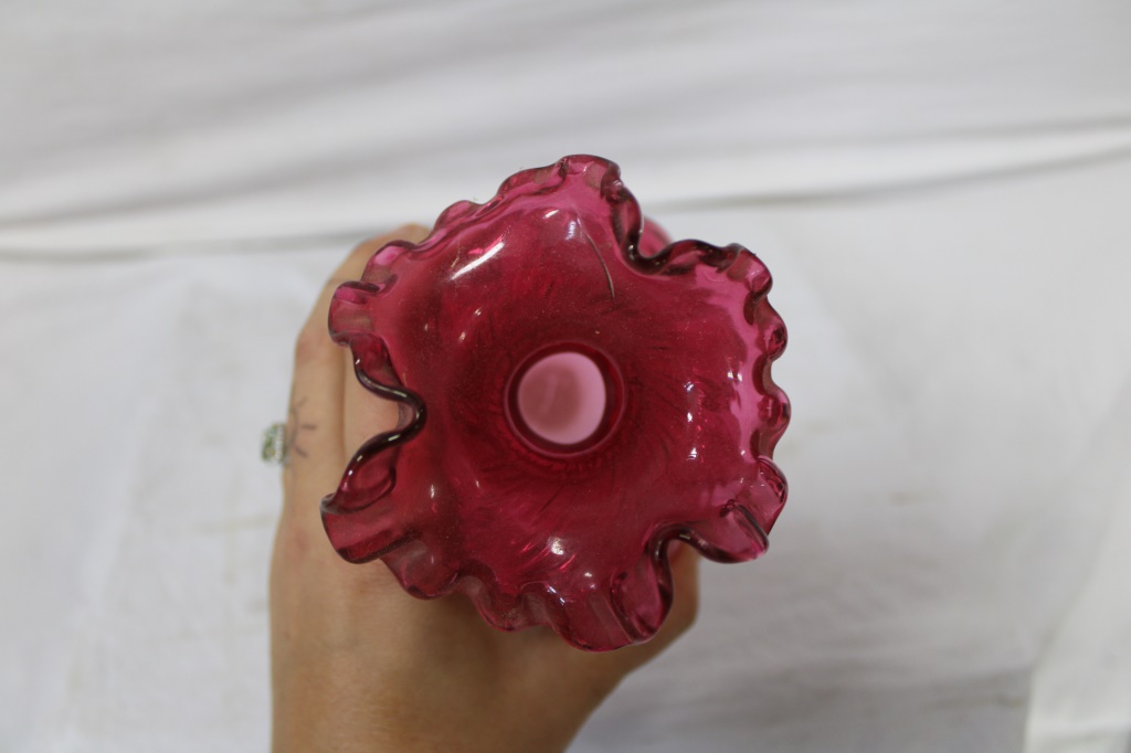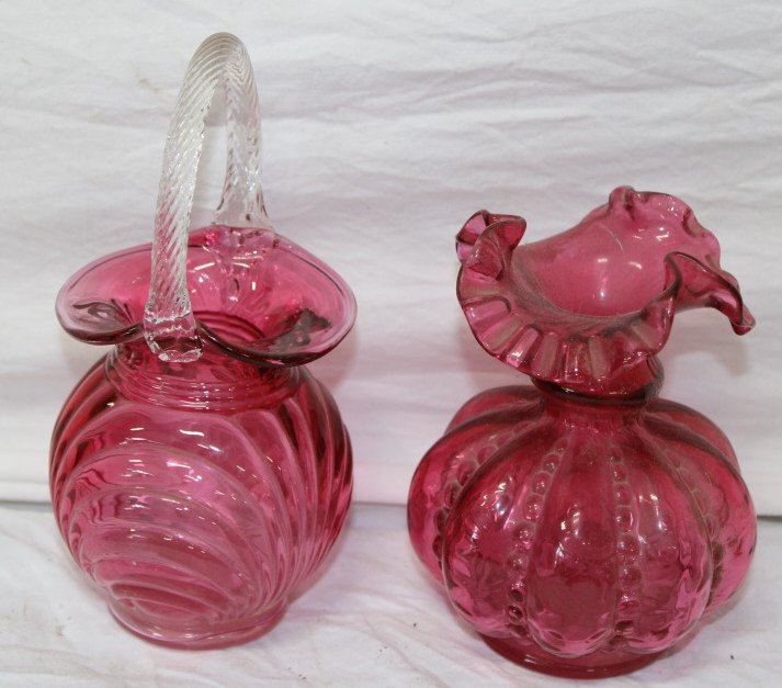 FENTON CRANBERRY BASKET & VASE