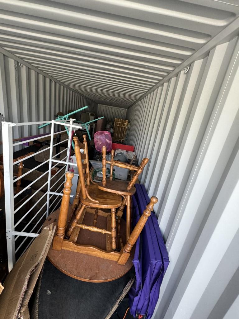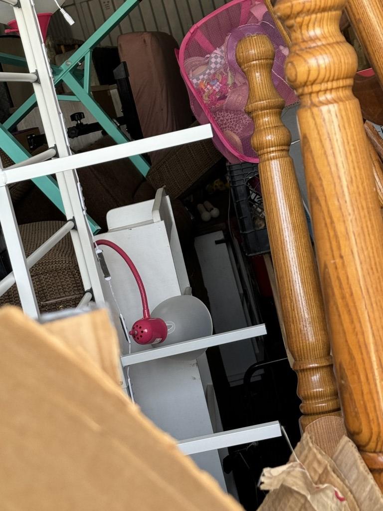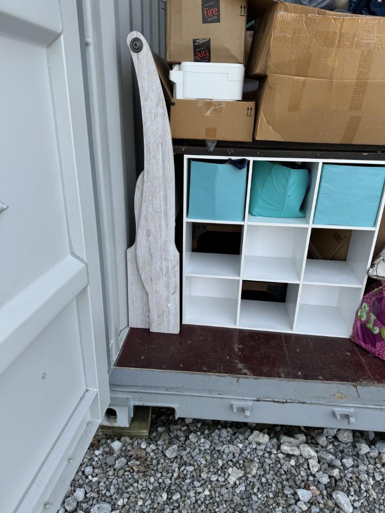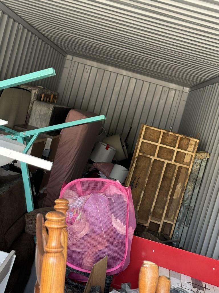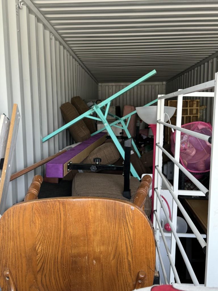 40′ Long 8′ Wide- Bunch of furniture, Kid gymnastic Beam, Tumble mat, Farm house style head board, Shelving Household items, Cowboy boots, HP Computer box, HP Printer box, Parts washer, Lamps