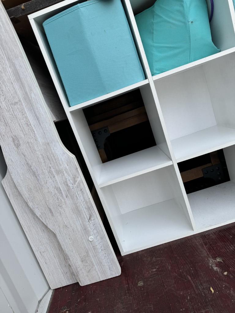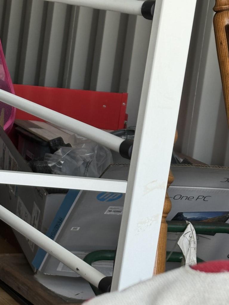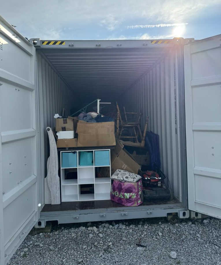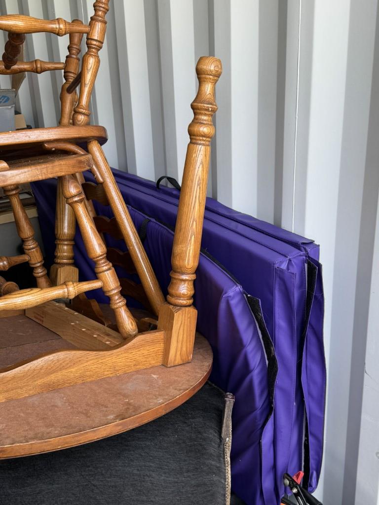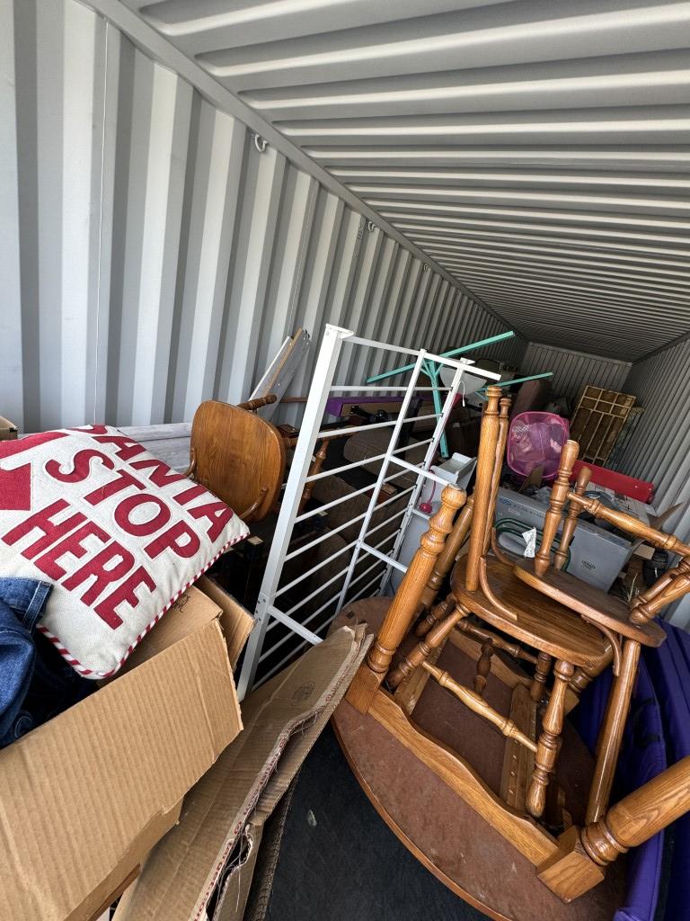 40′ Long 8′ Wide- Bunch of furniture, Kid gymnastic Beam, Tumble mat, Farm house style head board, Shelving Household items, Cowboy boots, HP Computer box, HP Printer box, Parts washer, Lamps