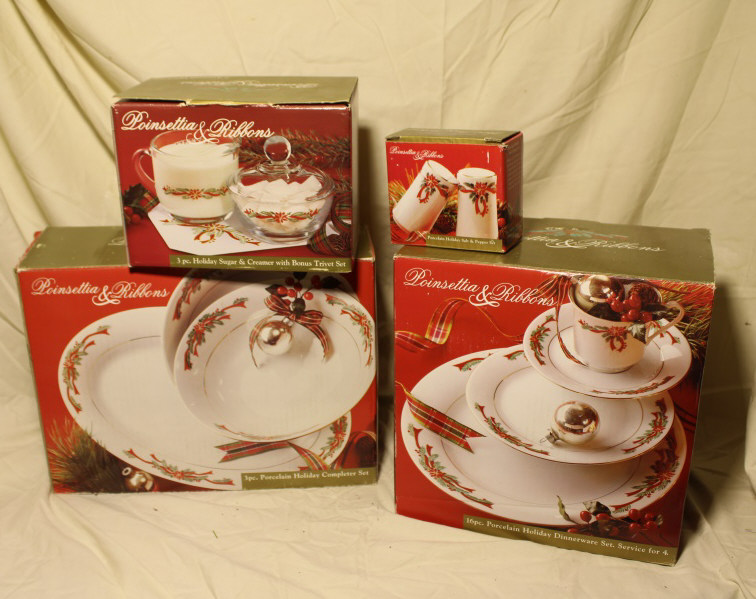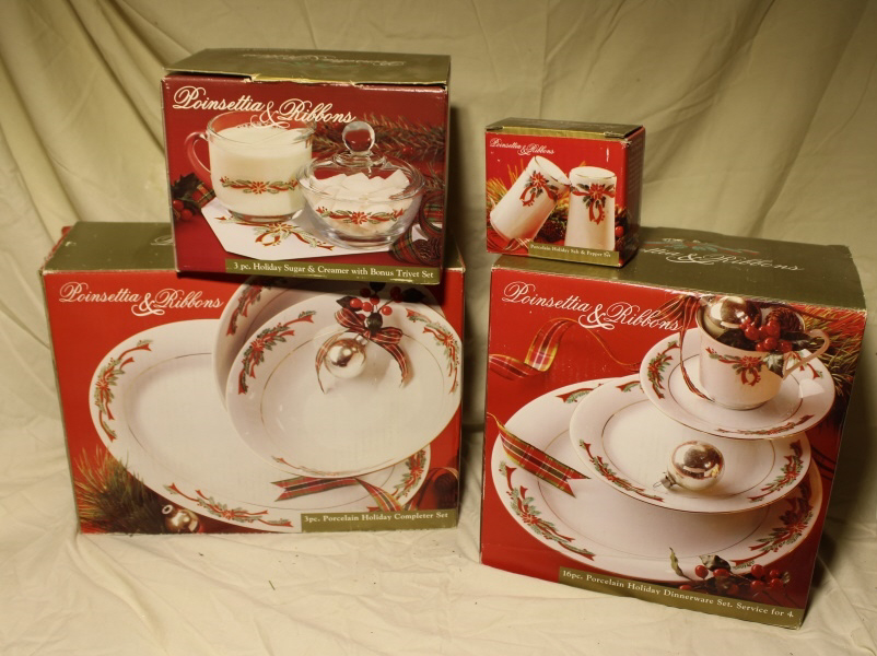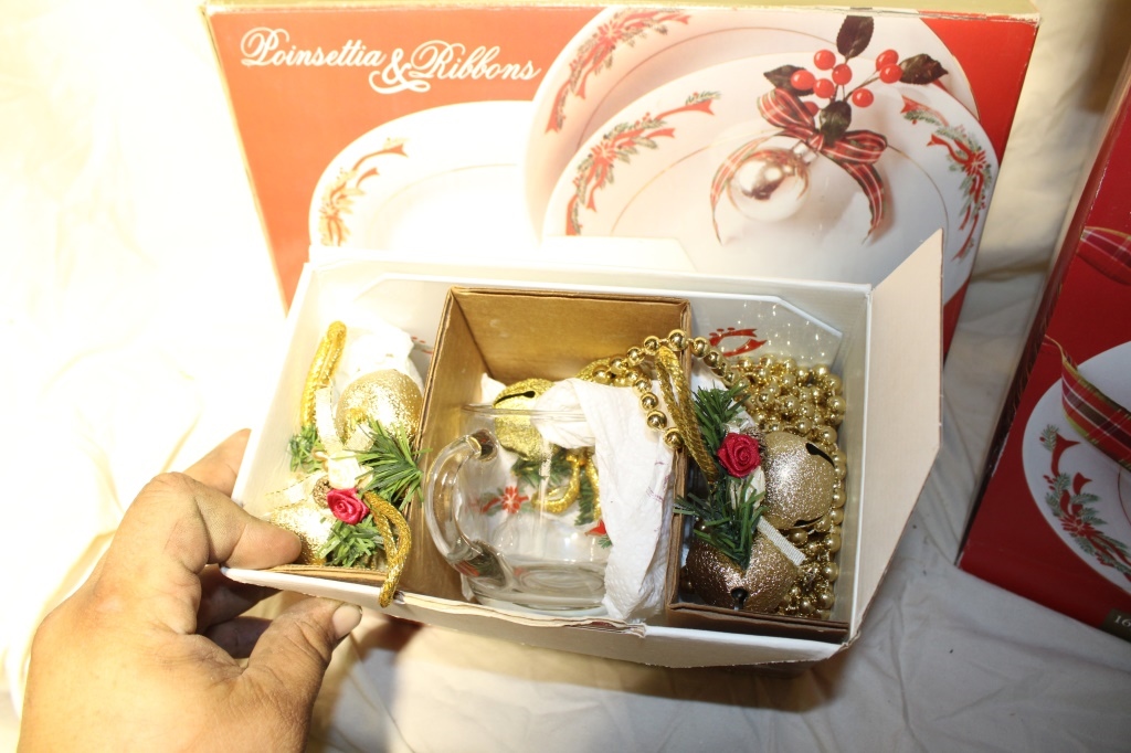 TWO SETS OF CHRISTMAS PLATE SET, SALT & PEPPER SHAKER, CHRISTMAS BOWLS,