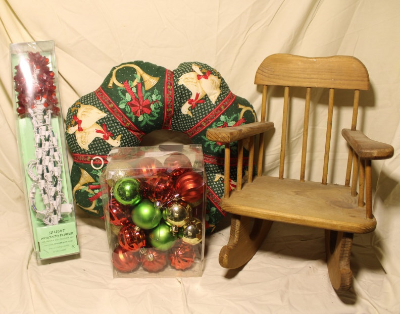 ROCKING CHAIR, CHRISTMAS BULBS,& MORE