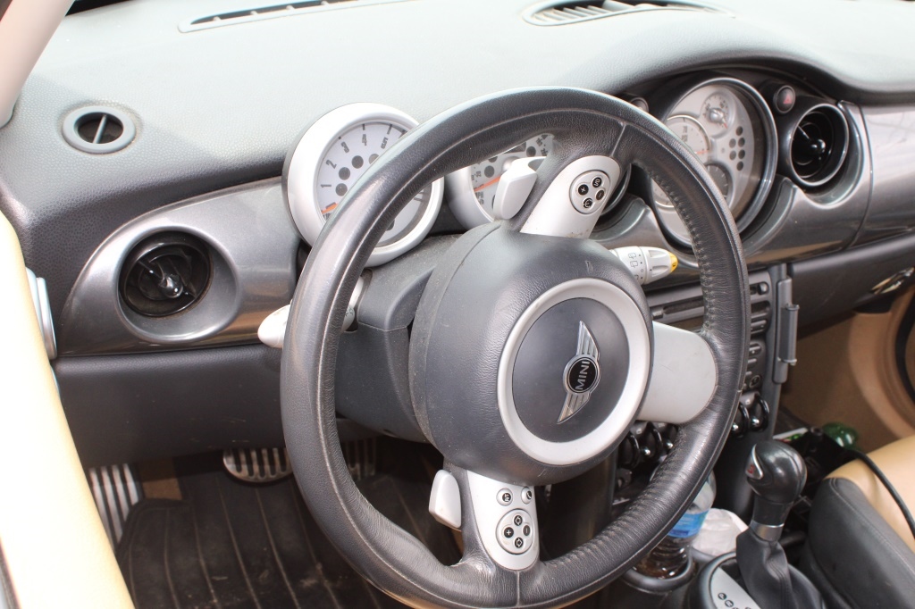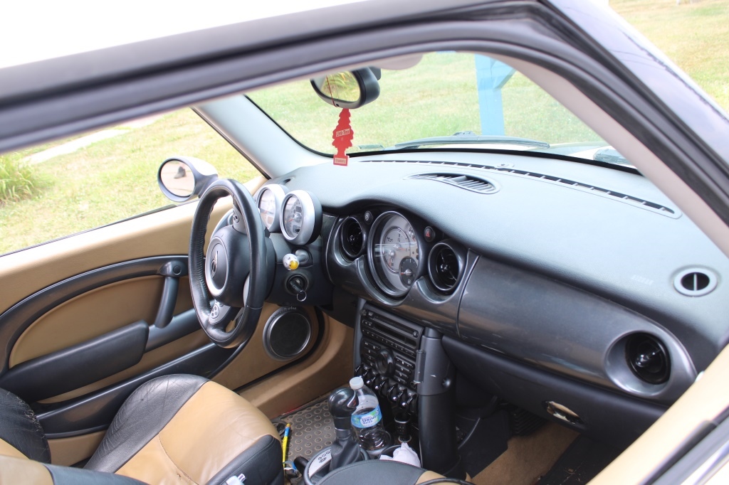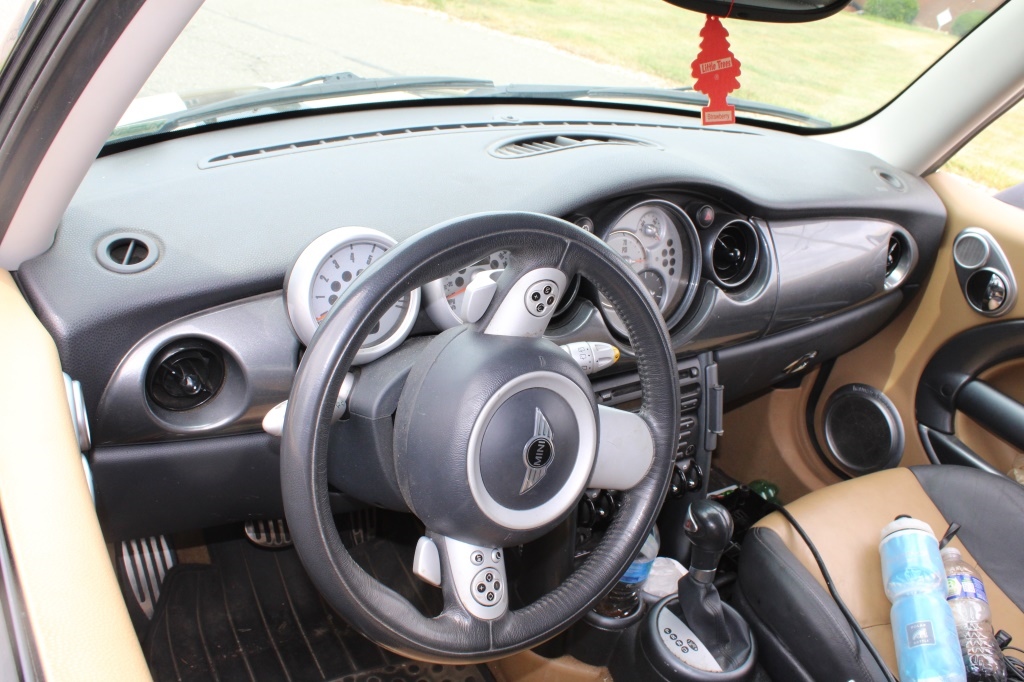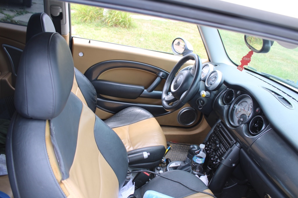 BROWN/BLACK INTERIOR WITH LEATHER SEATS.