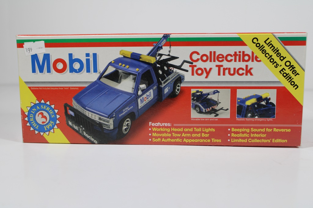 NOS 1/24 SCALE. MOBIL PROMO COLLECTOR TOY WRECKER LIMITED EDITION WITH LIGHTS AND SOUND THIRD IN A SERIES 1995