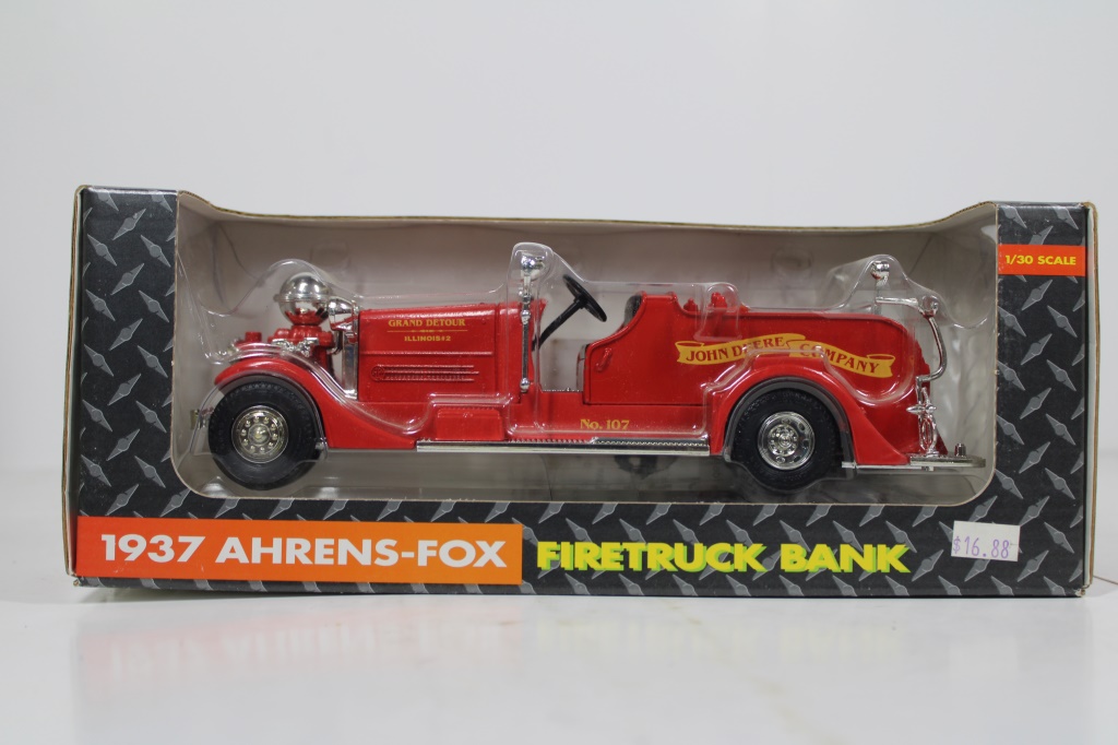 ERTL 1937 AHRENS-FOX JOHN DEERE FIRETRUCK BANK