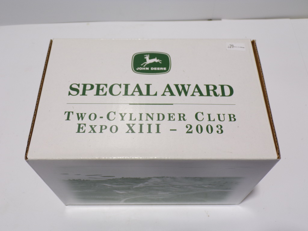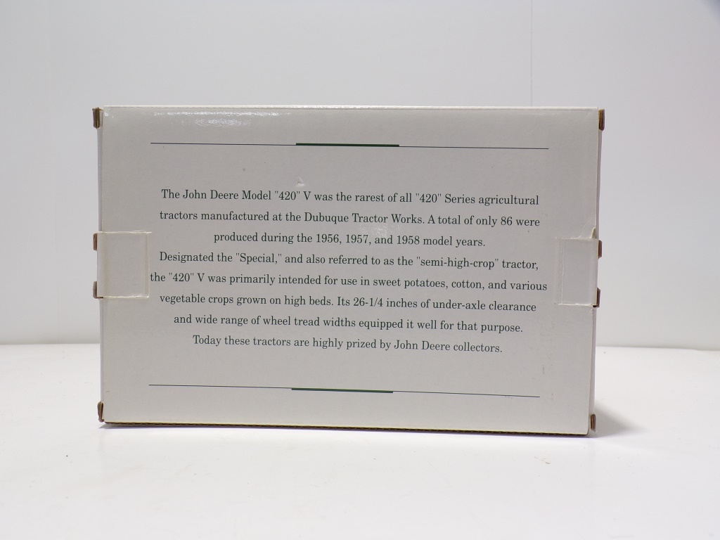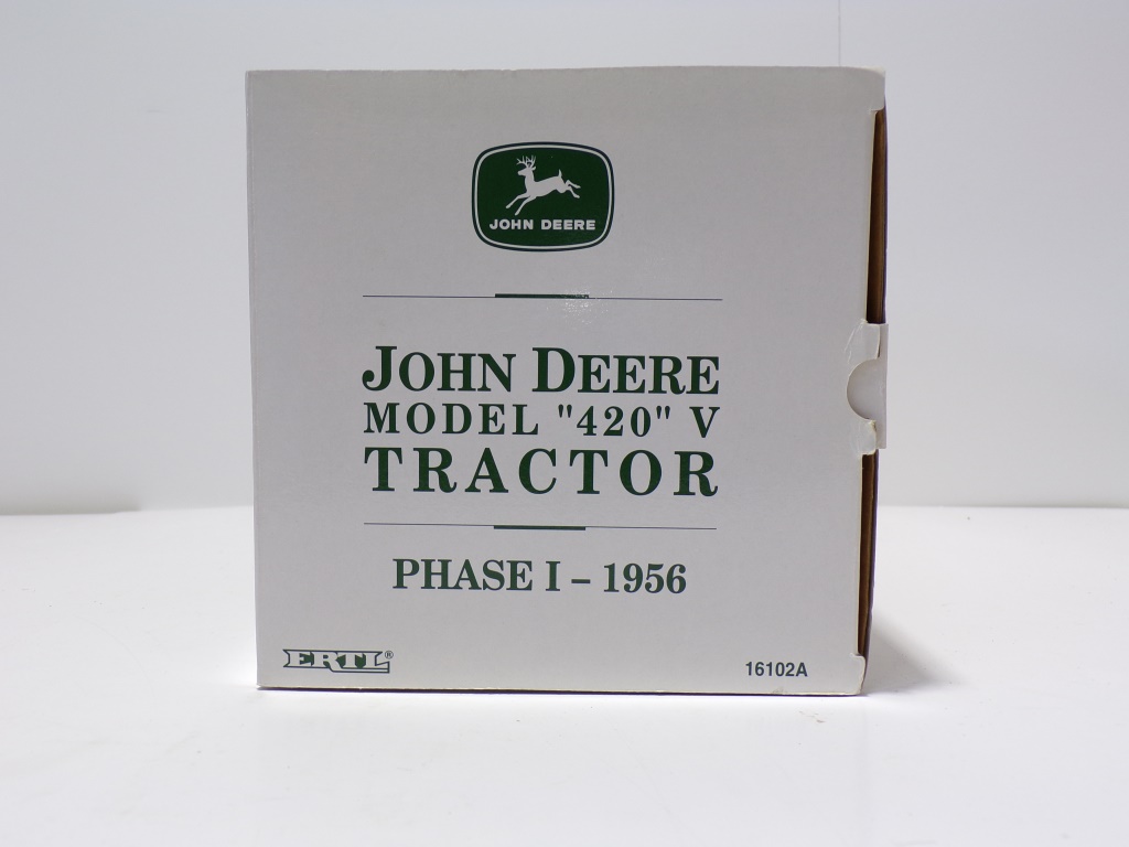 NOS STOCK NO. 16102A 1/16 SCALE. ERTL JOHND EERE MODEL 420 V TRACTOR PHASE I-1956 SPECIAL AWARD TWO CYLINDER CLUB EXPO XIII 2003