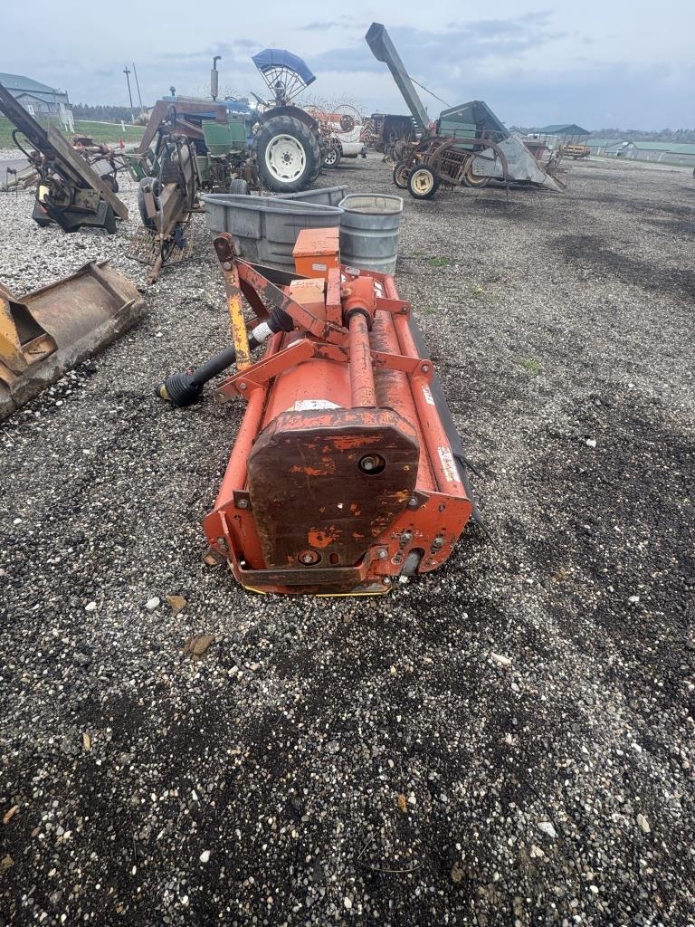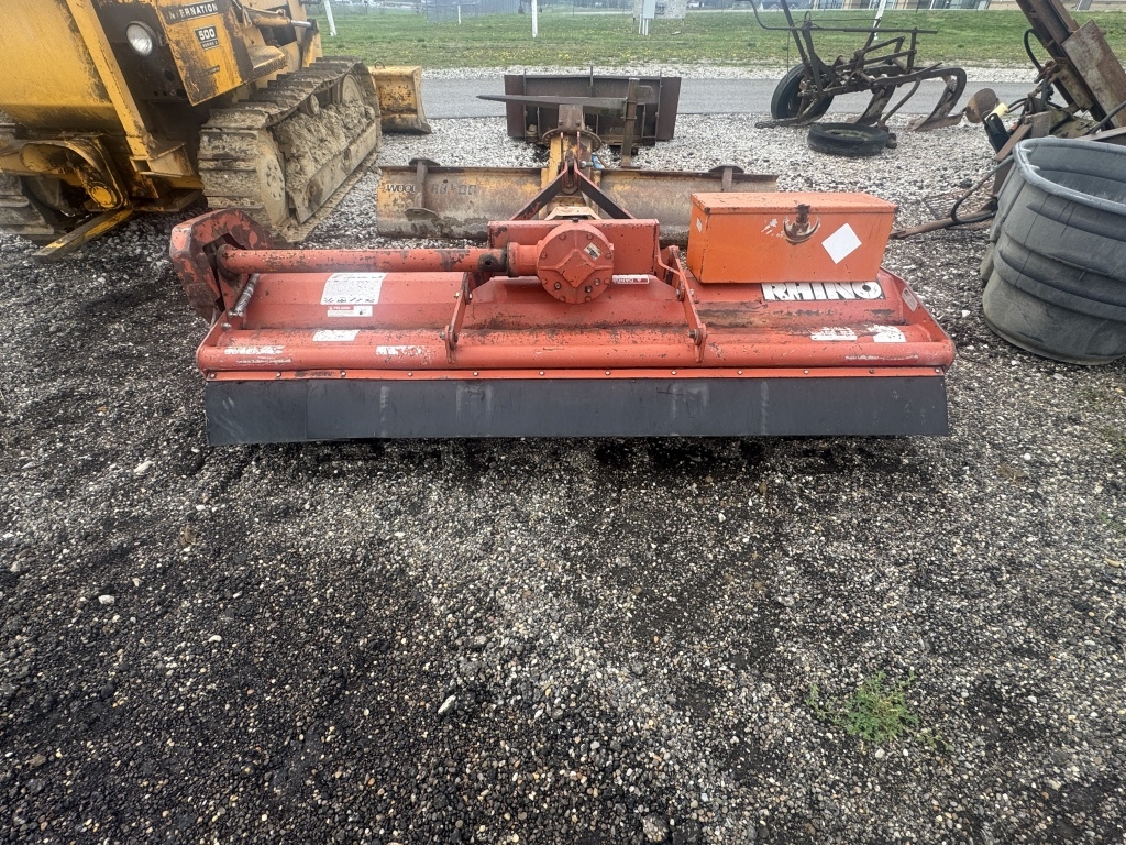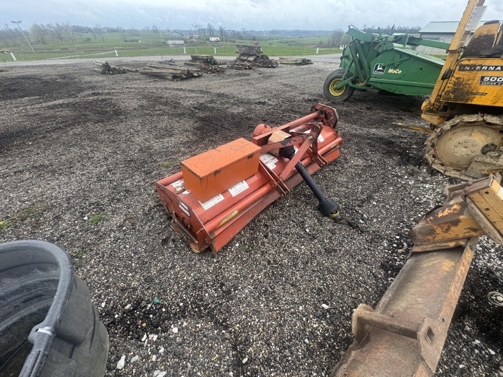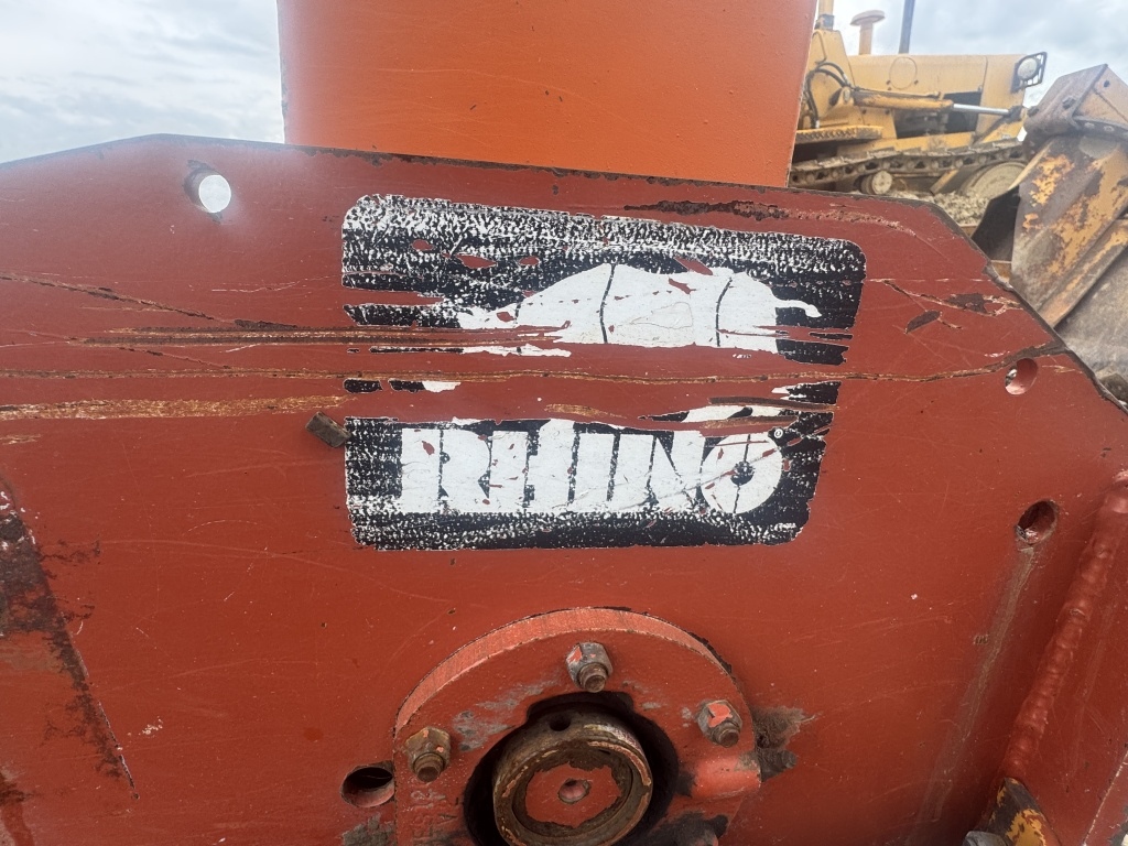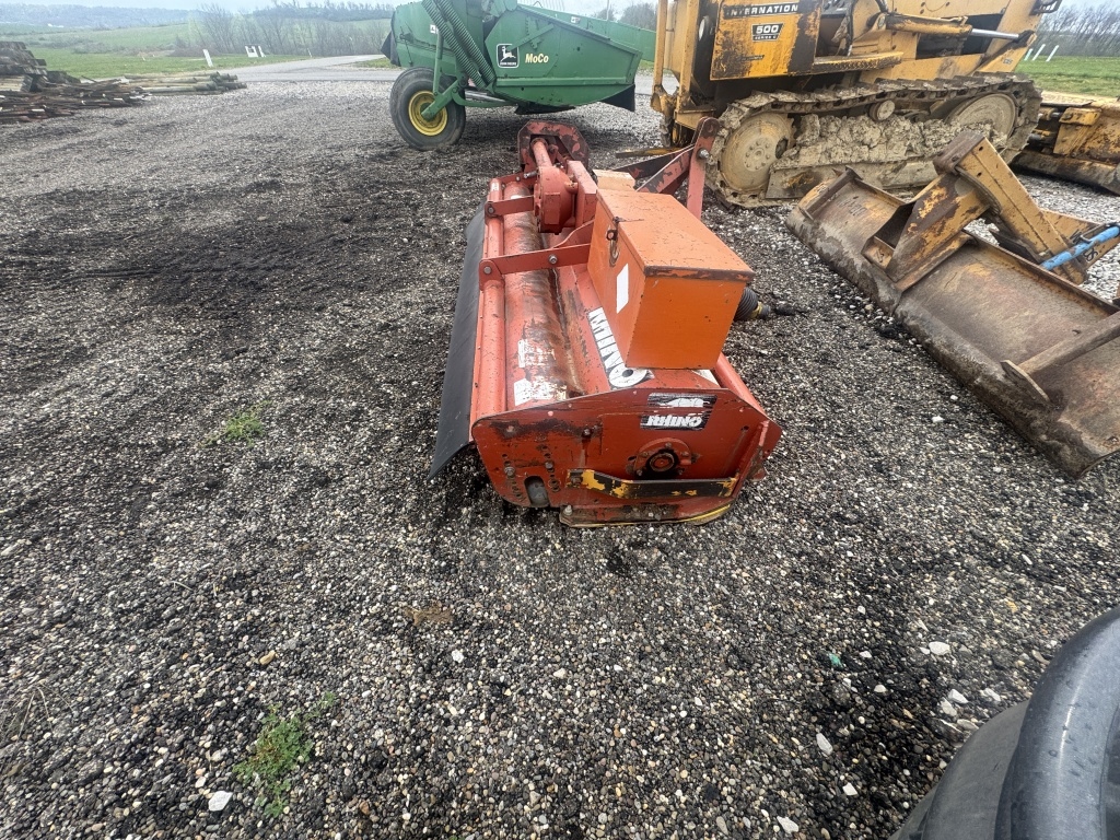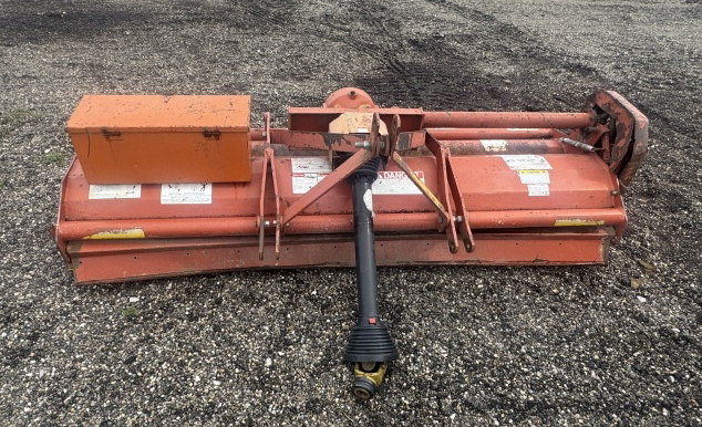RIHNO THREE POINT HOOK UP FLARE MOWER PTO DRIVEN WITH TOOL BOX ATTACHED CODE # DATE 100, SERIAL #000072