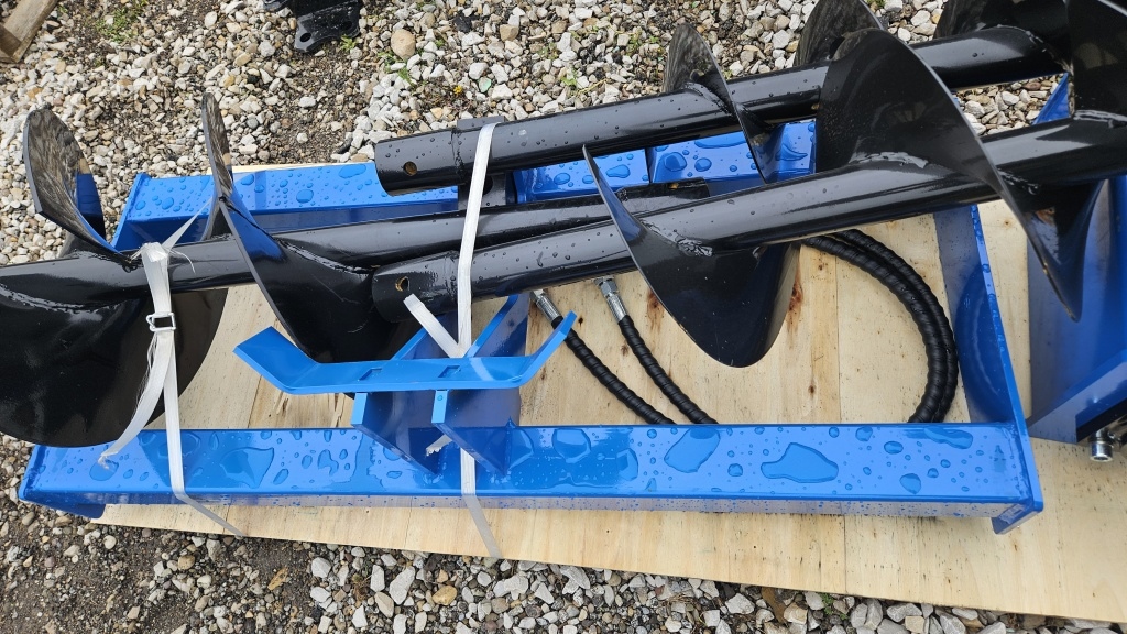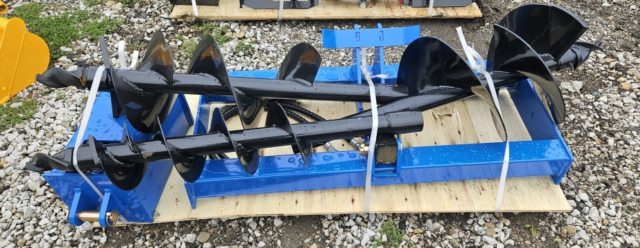 NEW SKID STEER QUICK ATTATCH HYDRAULIC AUGER WITH 3″ 5″ & 6″ AUGER BITS