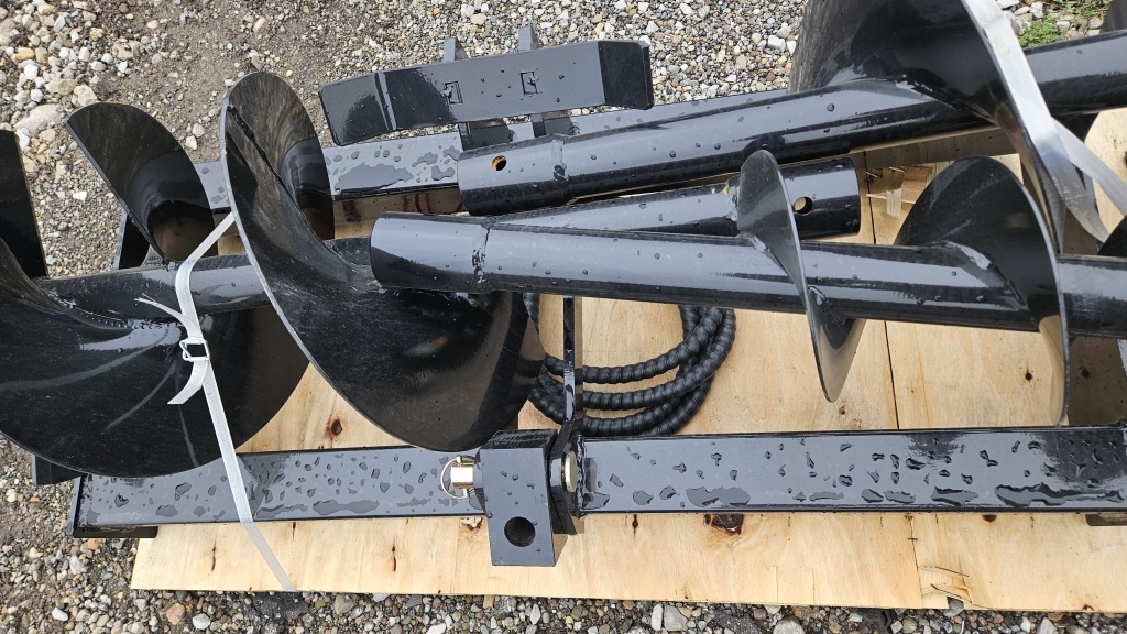NEW SKID STEER QUICK ATTATCH HYDRAULIC AUGER WITH 3″ 5″ & 6″ AUGER BITS
