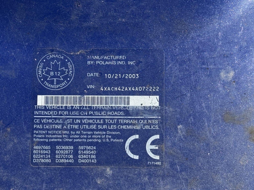 POLARIS 4WD 527 HRS VIN 4XACH42AX4A072222
