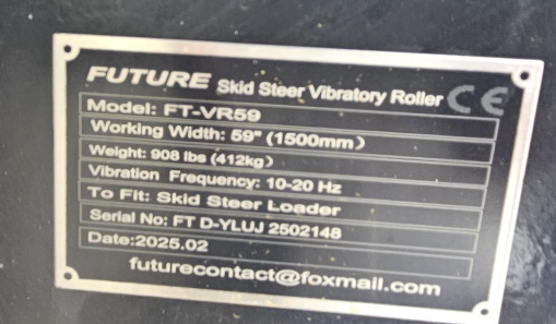 NEW FUTURE QUICK ATTACH VIBRATORY DRUM ROLLER HYDRAULIC DRIVEN MODEL #FT-VR59, 59″ WIDE