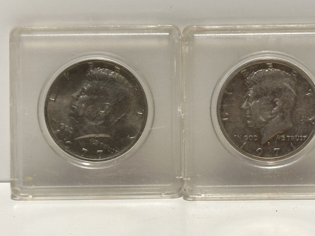 1971 & 1977 50 CENT COINS IN CASES 2 FOR 1
