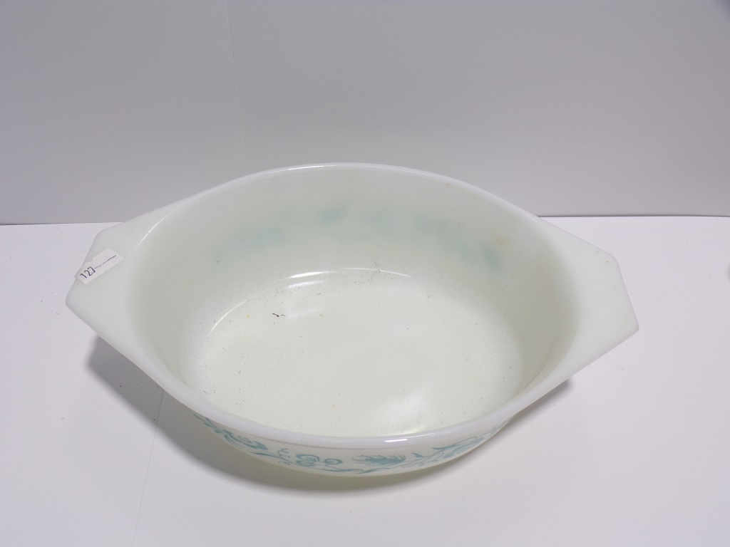 NO CHIPS, CRACKS OR BREAKS AND NO LID TO CASSEROLE DISH