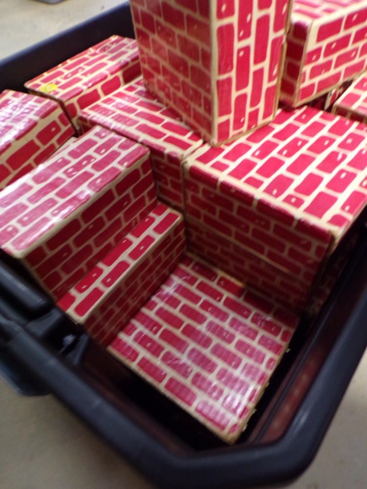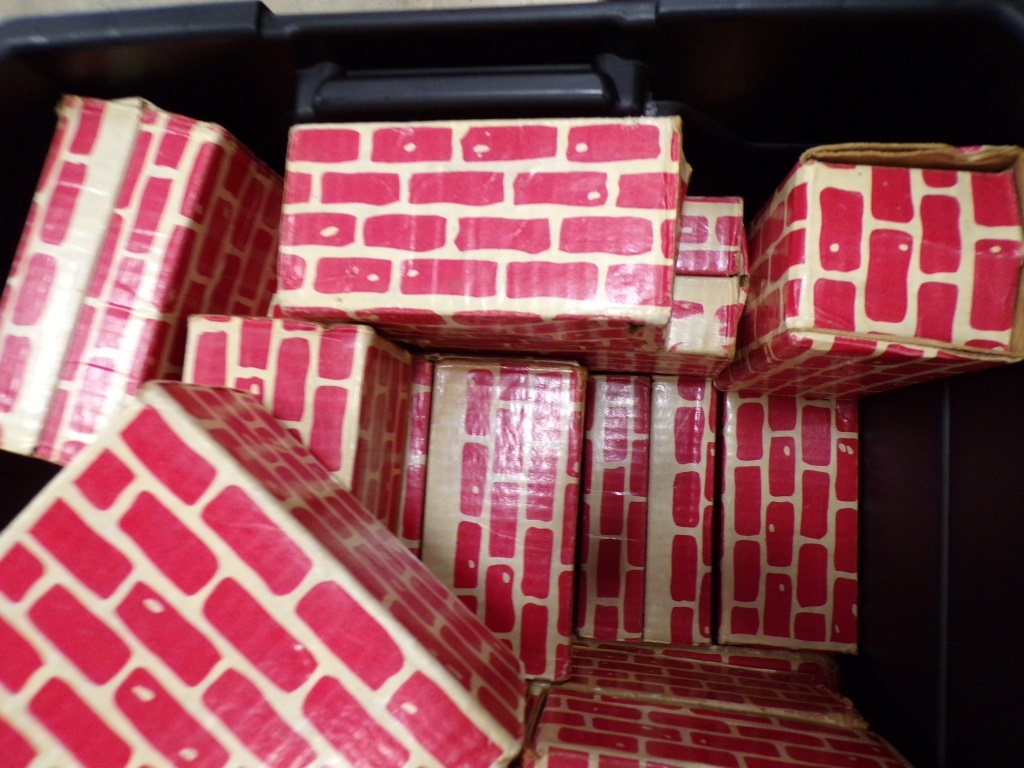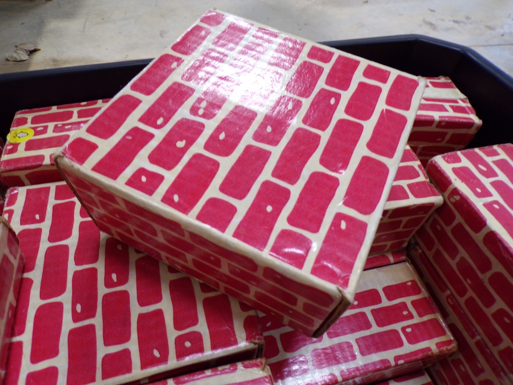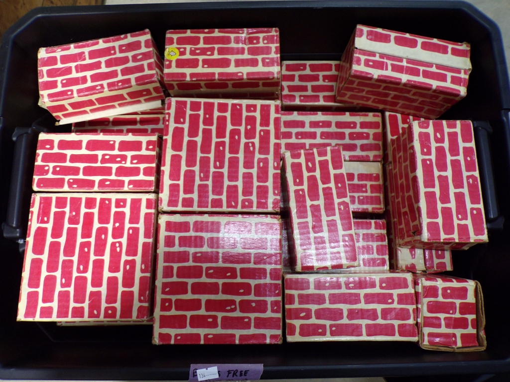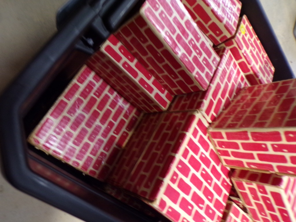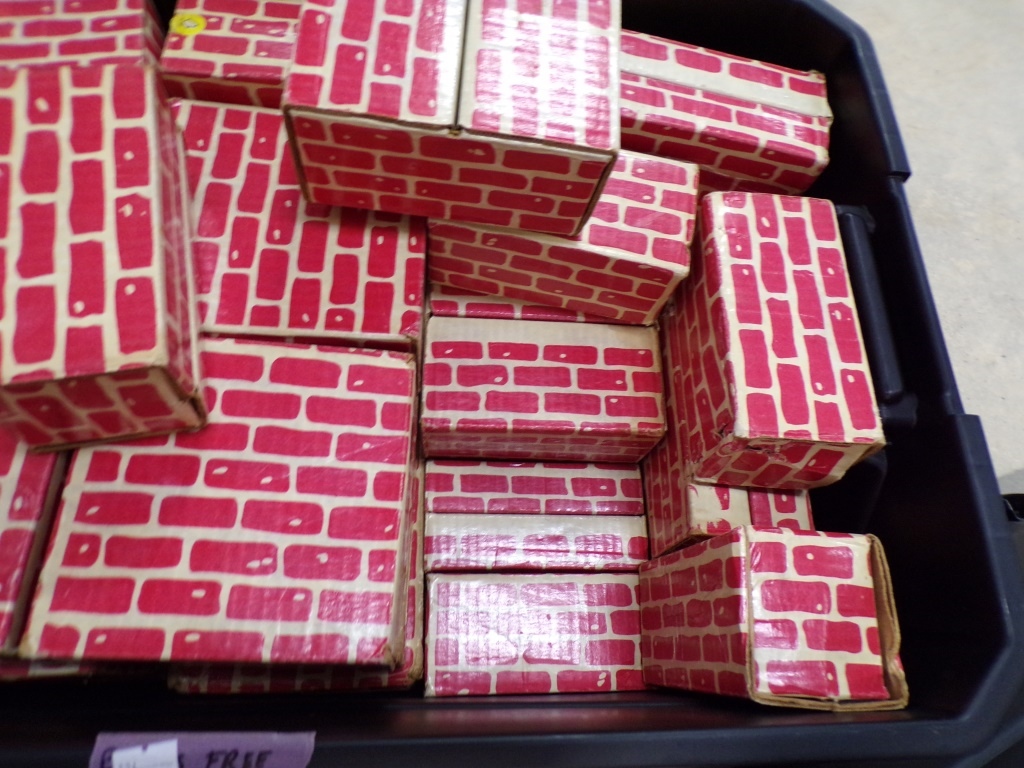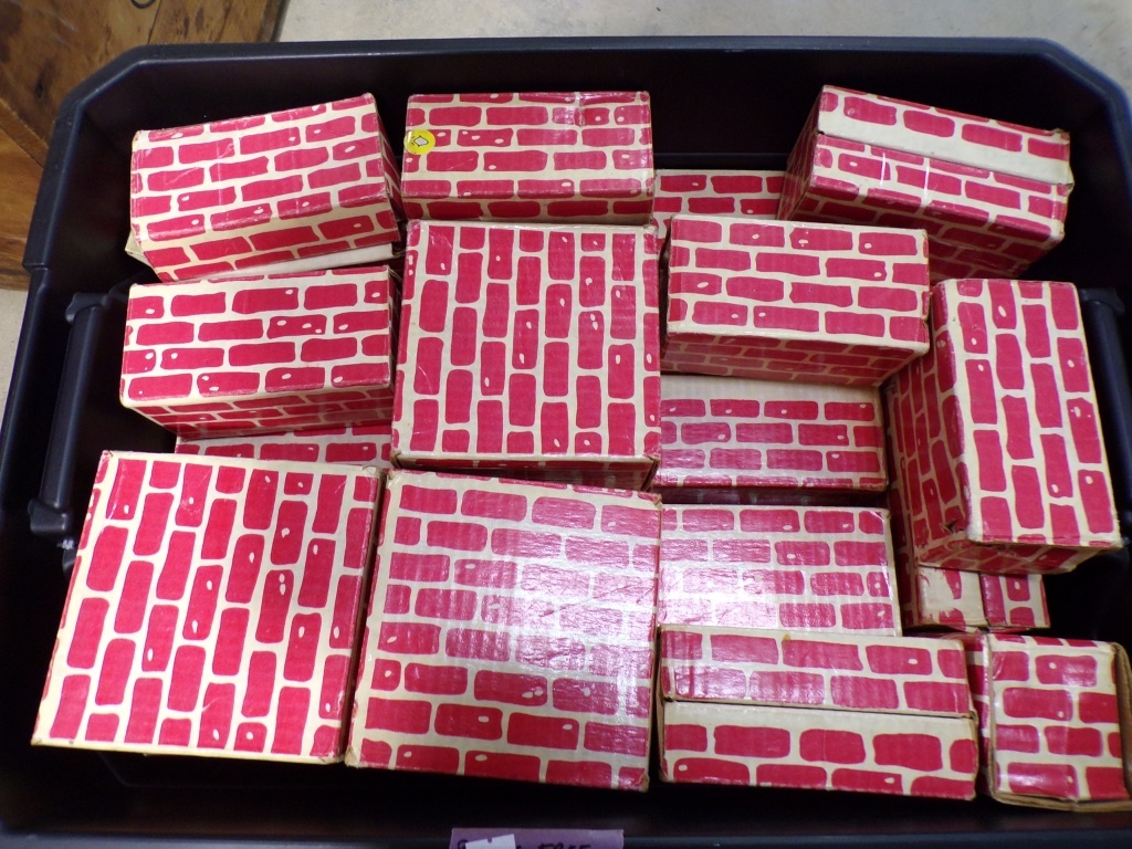 THIS IS A LOADED LOT OF VINTAGE CARDBOARD FAUX BRICK BLOCKS FOR BUILDING OR CHRISTMAS BACKGROUND DISPLAY