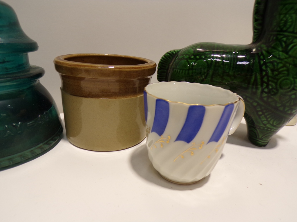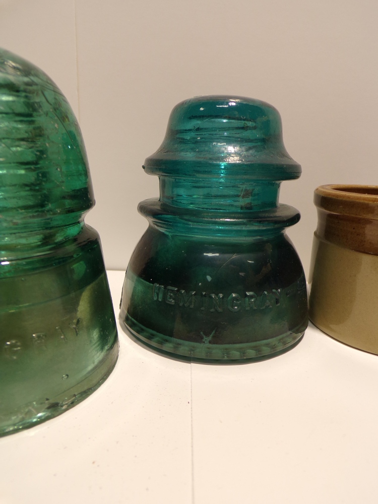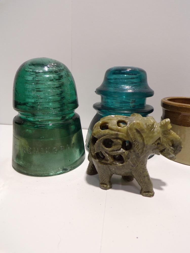 MISC. GLASSWARE AND STONEWARE LOT INC. INSULATORS
