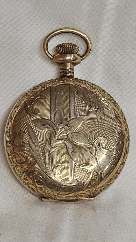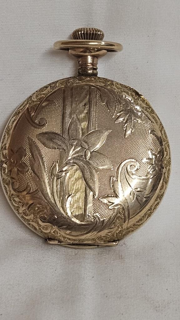 LADIES ELGIN GOLD FLORAL CASE CLEANED AND IN GOOD WORKING CONDITION