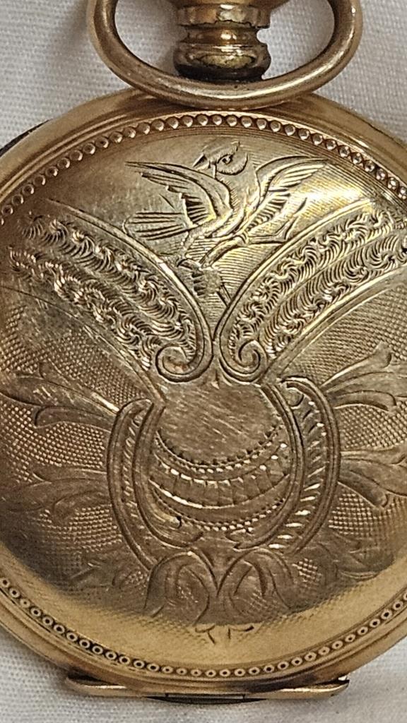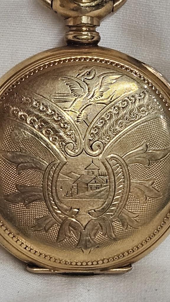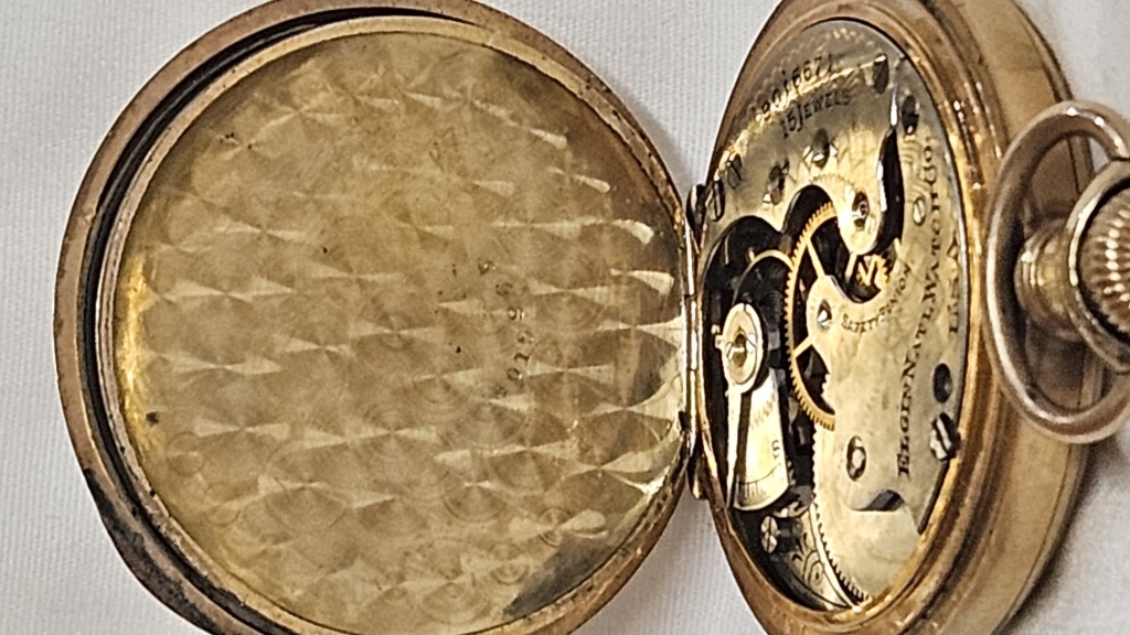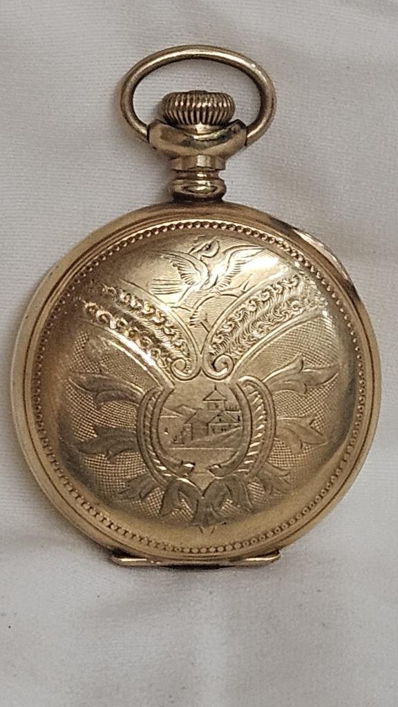 14K SPECIAL GOLD FILLED CASE 15J ORNATE ELGIN IN GOOD WORKING CONDITION WITH ORIGINAL LABEL RECENTLY CLEANED