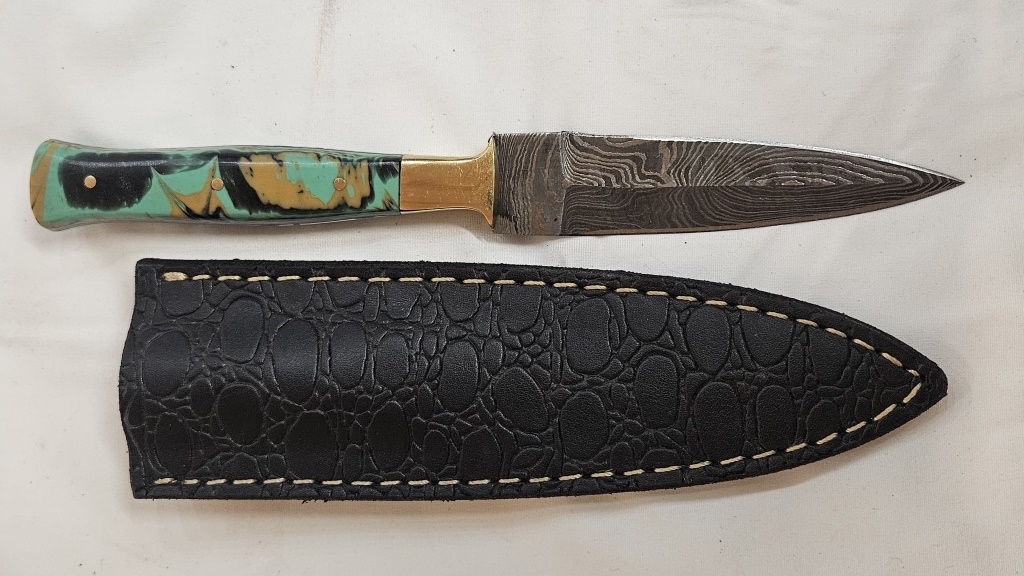 HAND FORGED RESIN HANDLE 4 IN. L BLADE 4 IN. L WITH LEATHER SHEATH