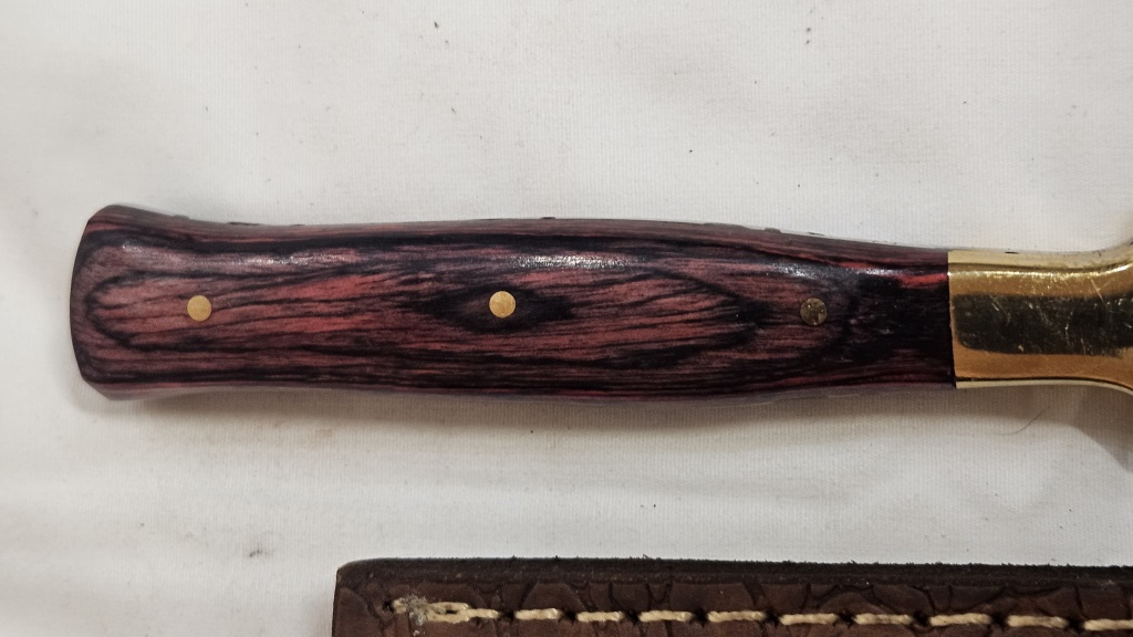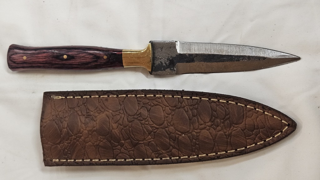 HAND FORGED WOOD GRAIN HANDLE 4 IN. L BLADE 4 IN. L WITH LEATHER SHEATH