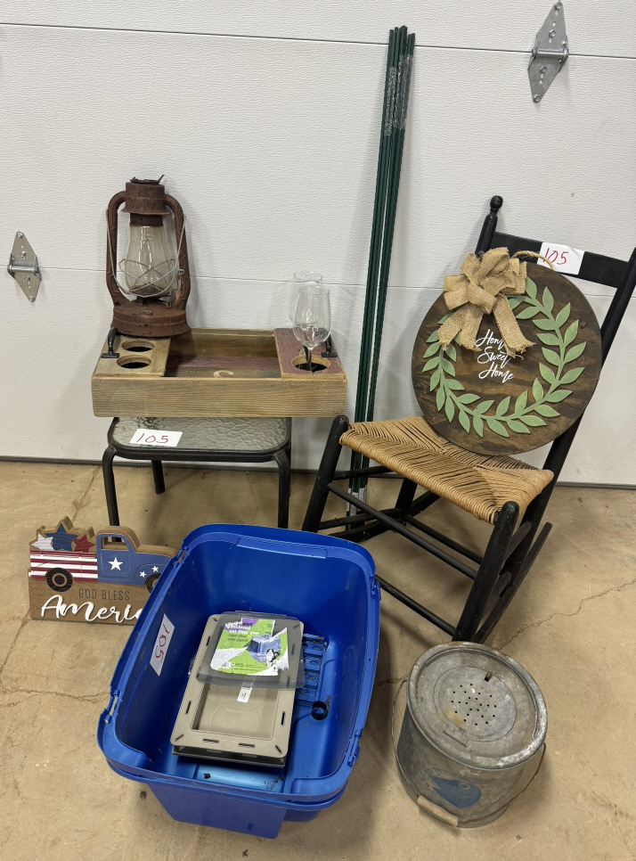 WINE GLASS CUP HOLDER, GLASS TABLE, ANIMAL CRATE, MINNOW BUCKET, CHAIR, WELCOME SIGN AND MORE