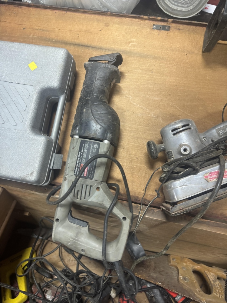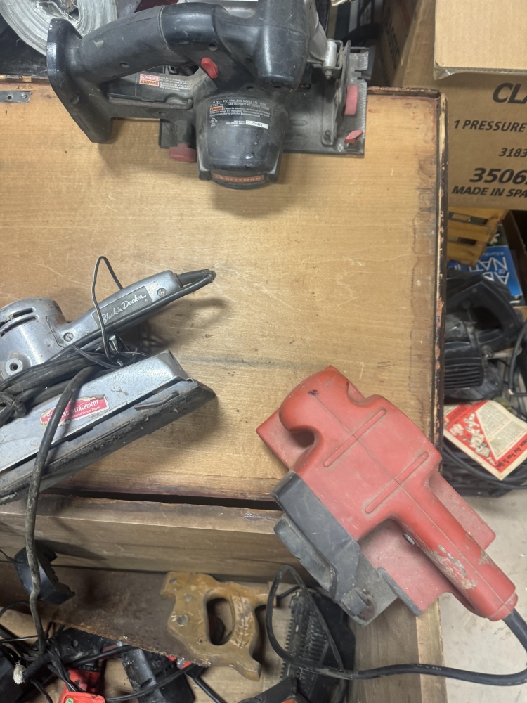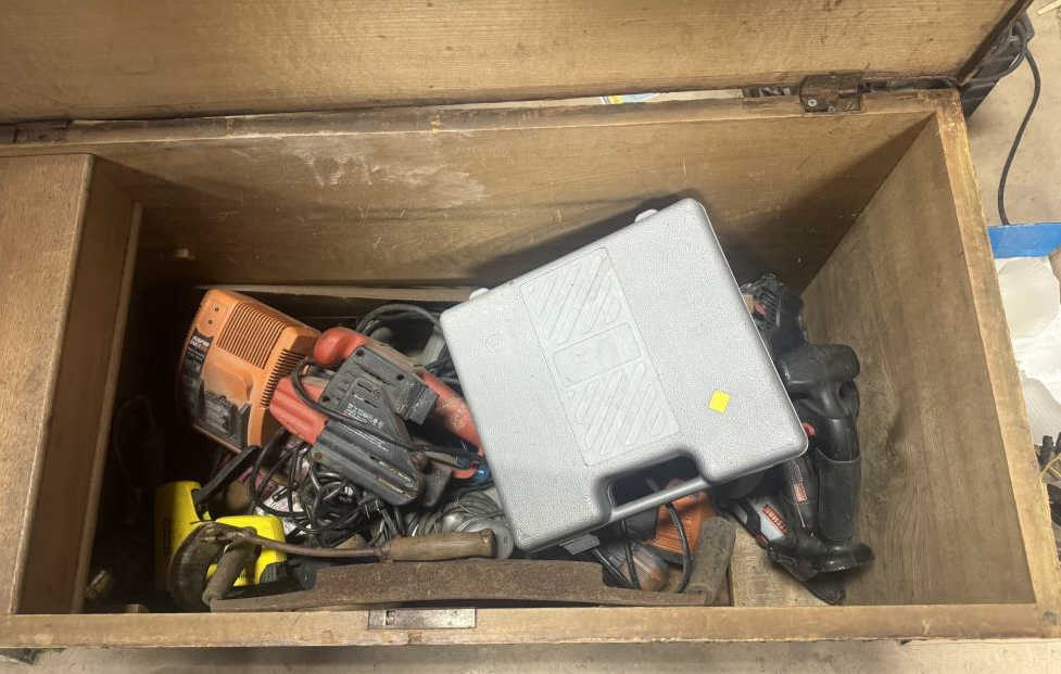 WOODEN CHEST FULL OF POWER TOOLS