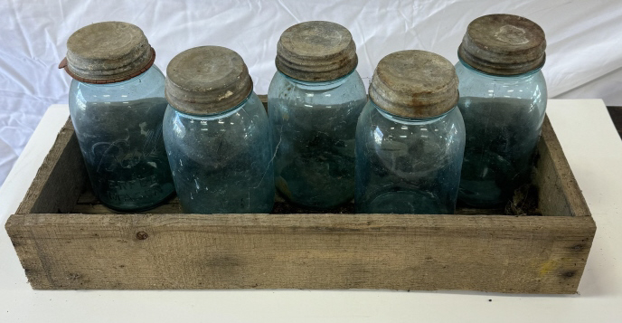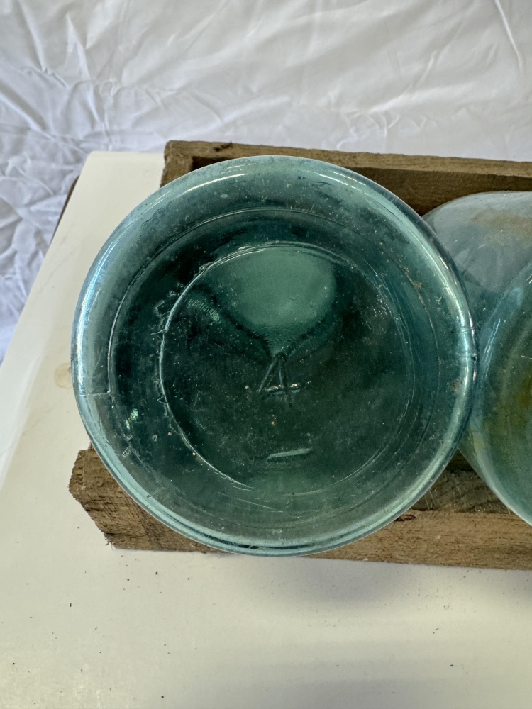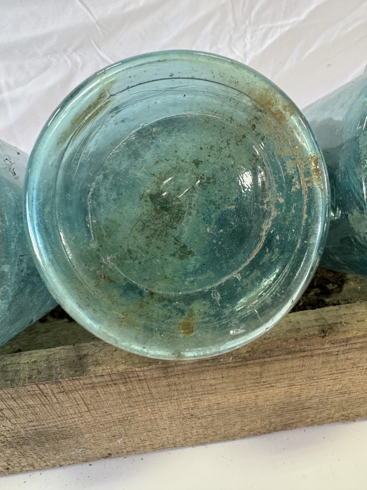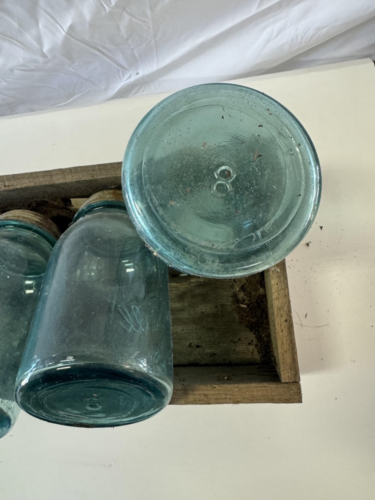 OLD BLUE JARS WITH NUMBERING ON THEM
