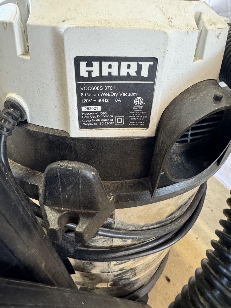 HANDY SIX GALLON HART VACUUM ON WHEELS