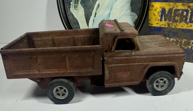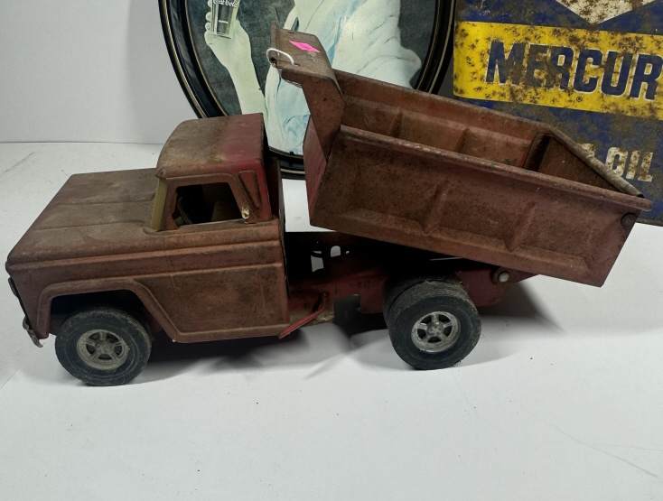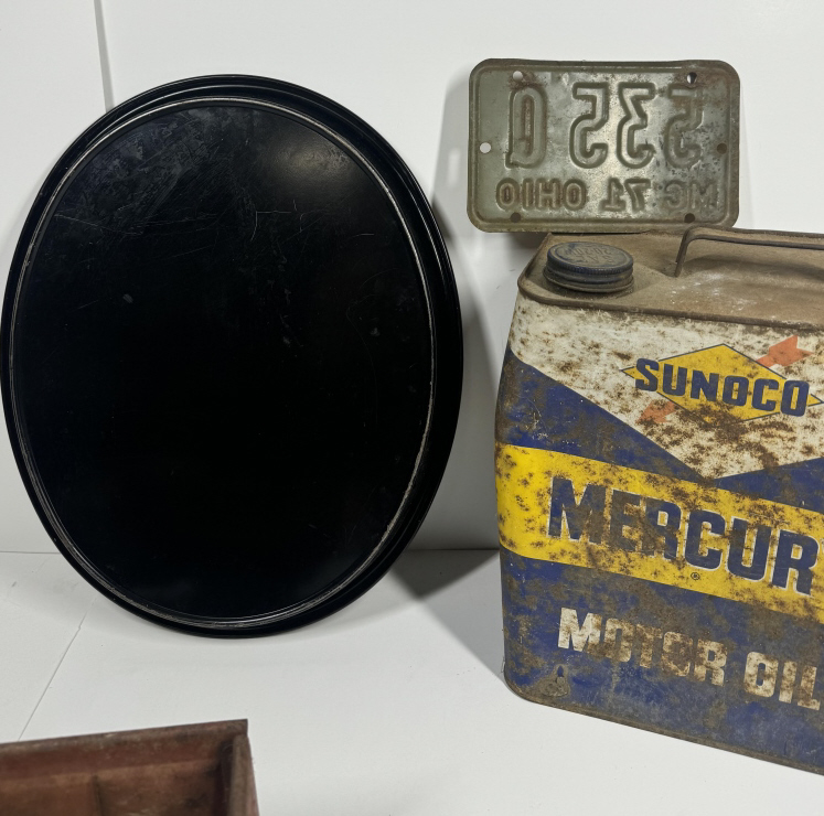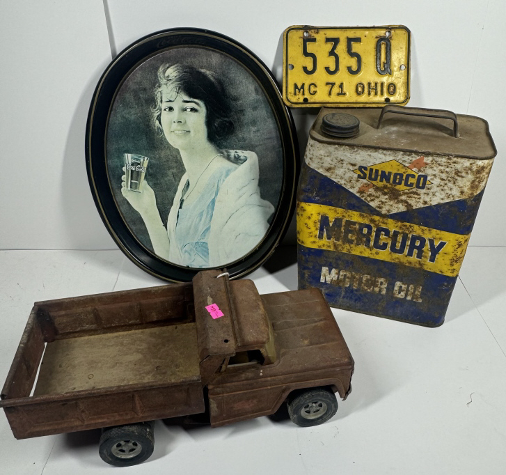 COKE TRAY, SUNCO CAN, OLD PLATE, & OLD TOY TRUCK