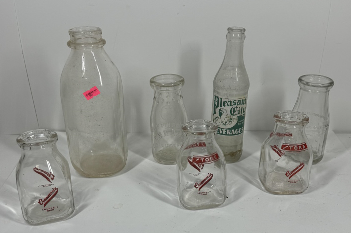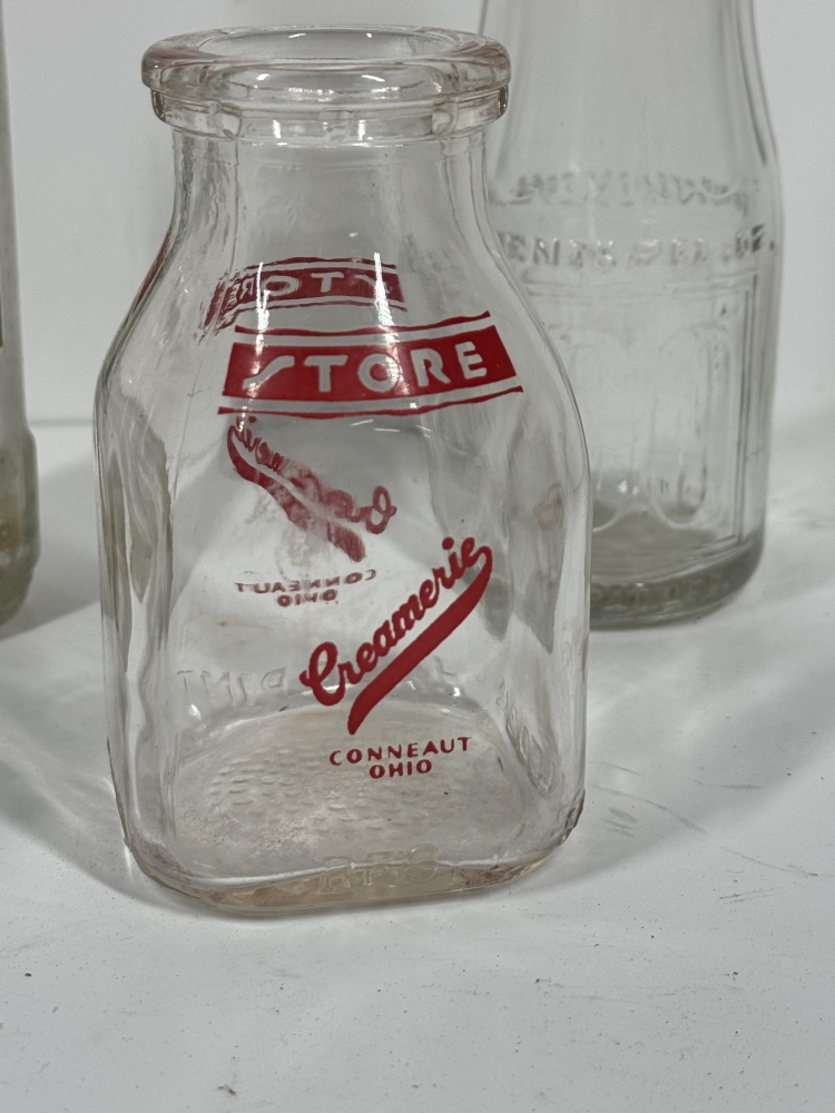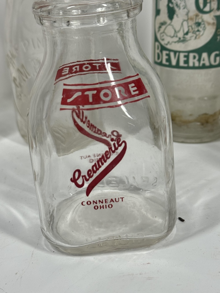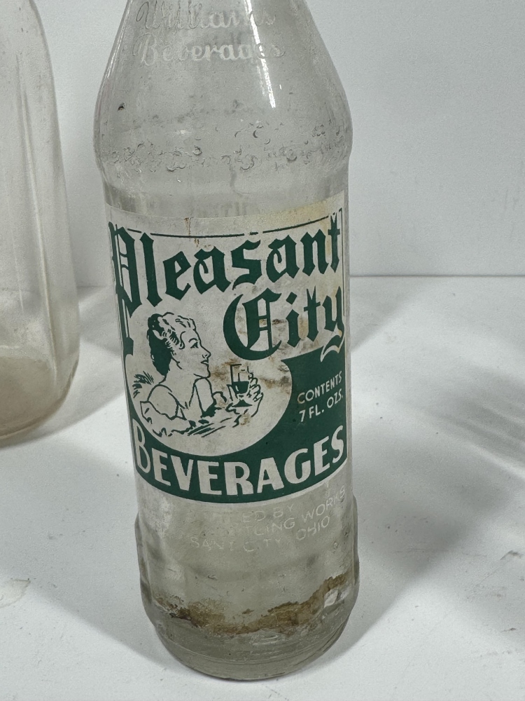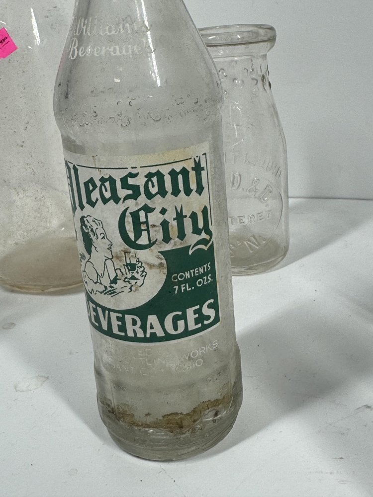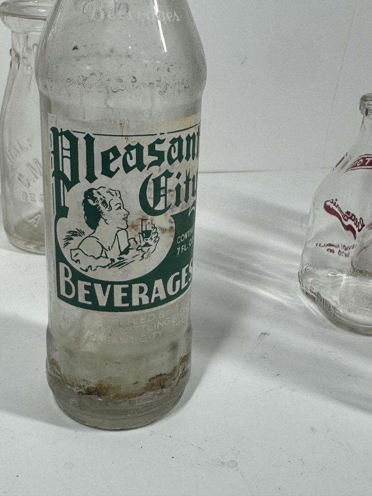 THREE CONNEAUT OHIO GLASS BOTTLES, PLEASANT CITY BEVERAGEE BOTTLE AND MORE!!
