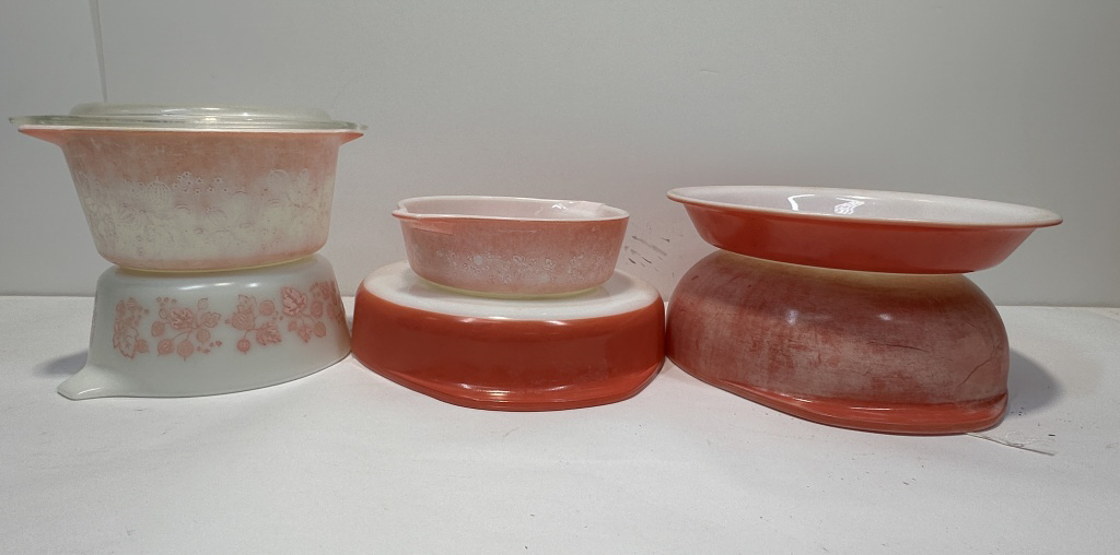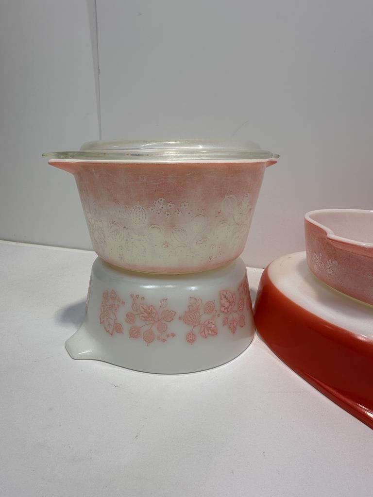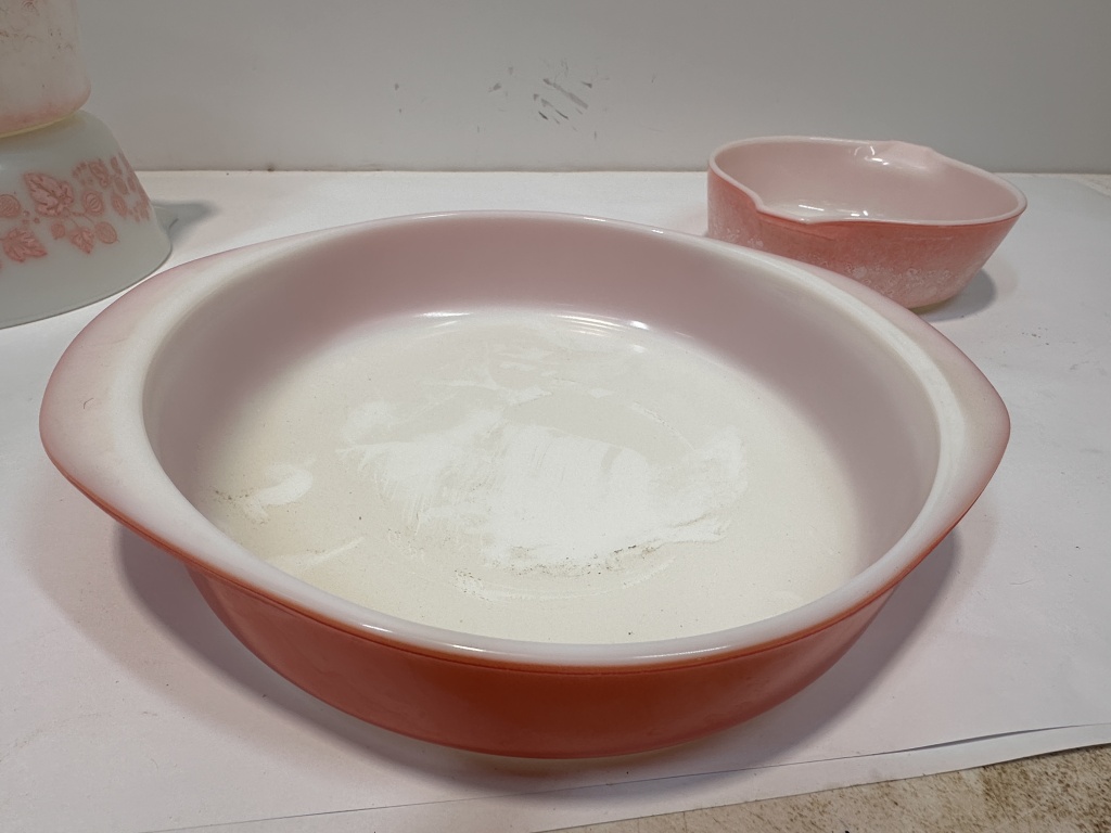 SET OF PINK PYREX WITH ONE CLEAR LID