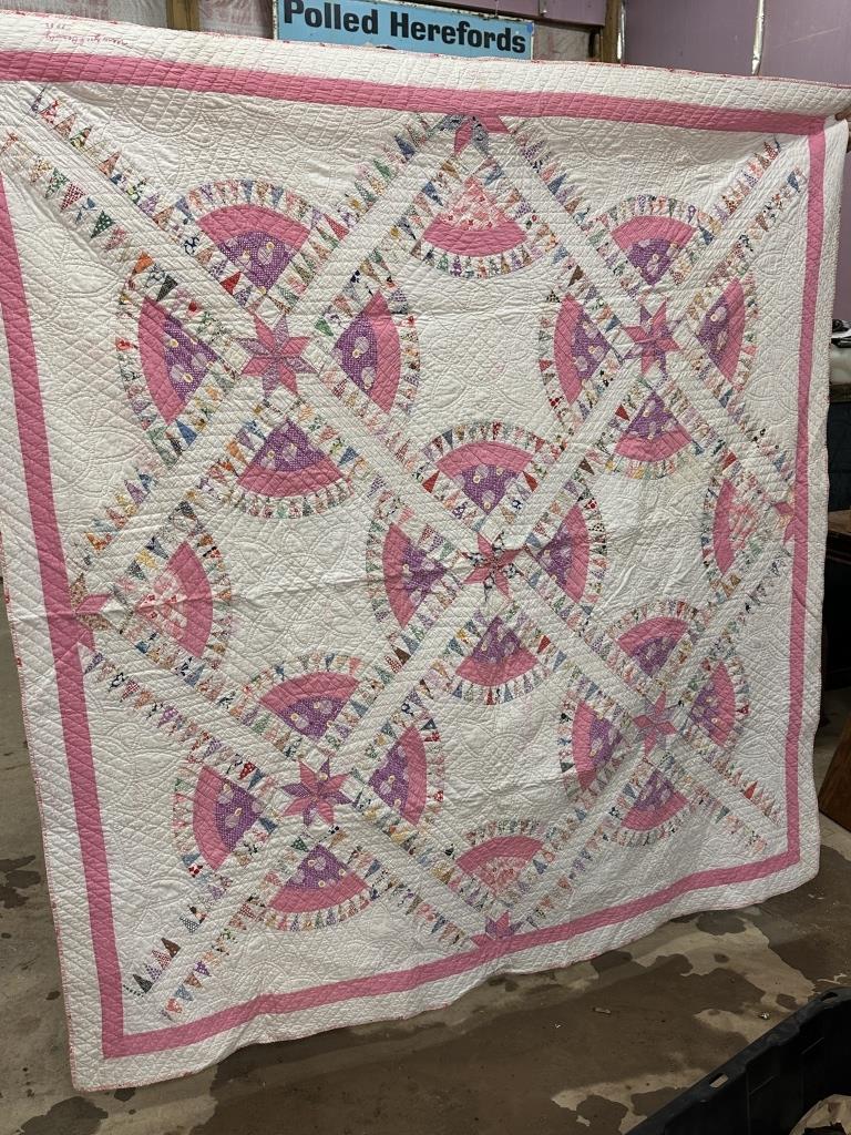 EARLY PINK STAR PATTERNED QUILT 72″X69″ HAND STICHED
