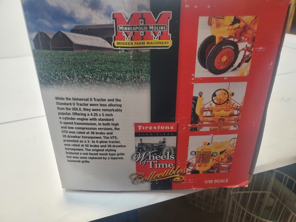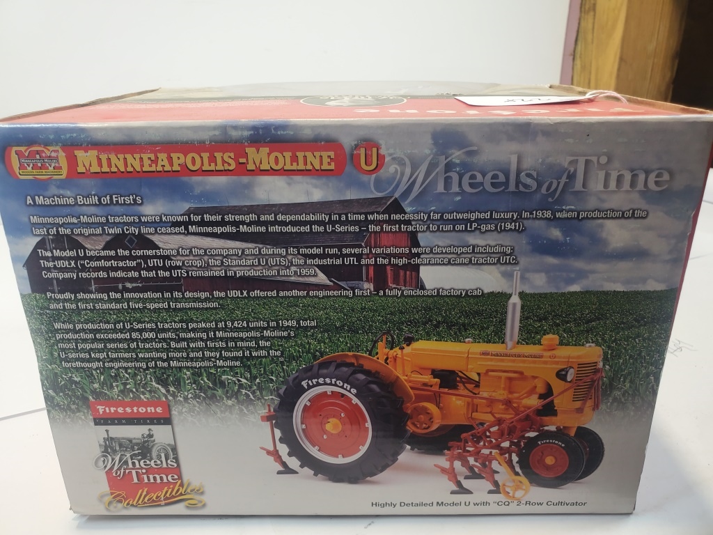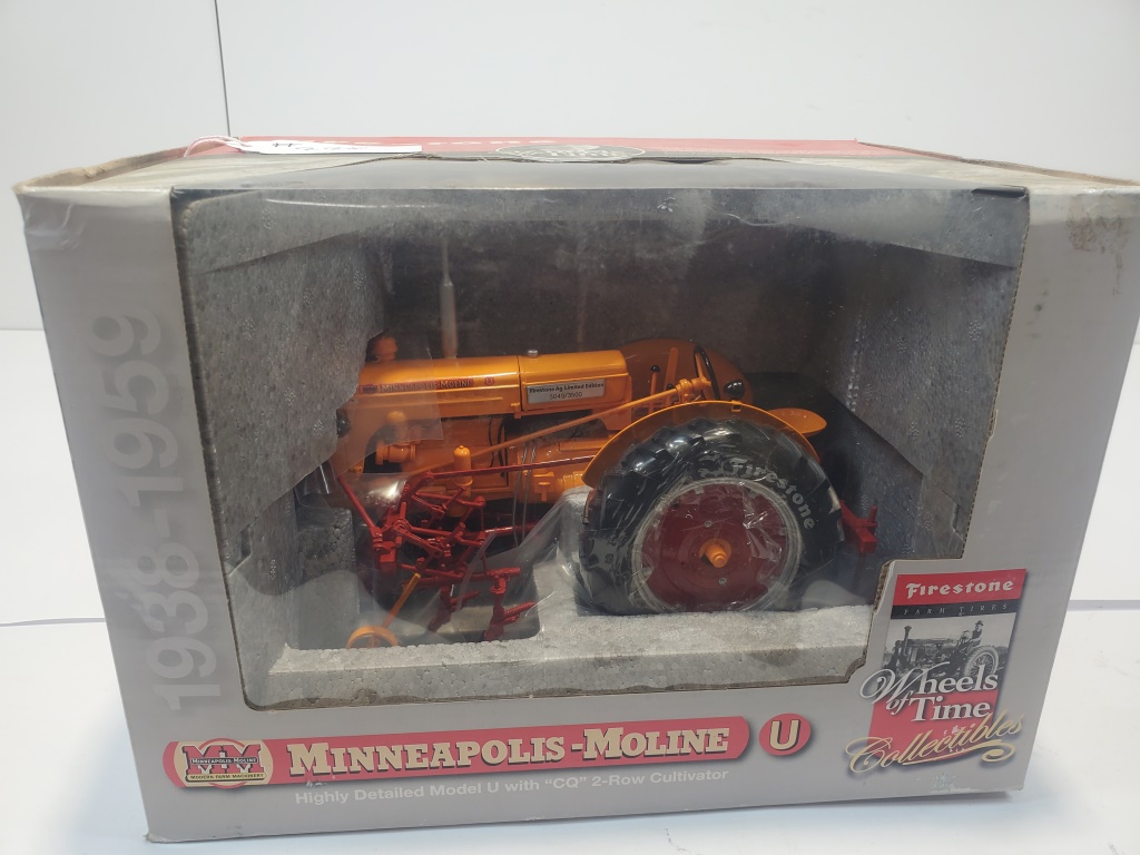 HIGHLY DETAILED FIRESTONE MINNEAPOLIS-MOLINE MODEL U TRACTOR NF WITH CQ 2 ROW CULTIVATOR 1/16 SCALE DIECAST METAL NIB FIRESTONE AG LIMITED EDITION 3049/3500 #CUST1077