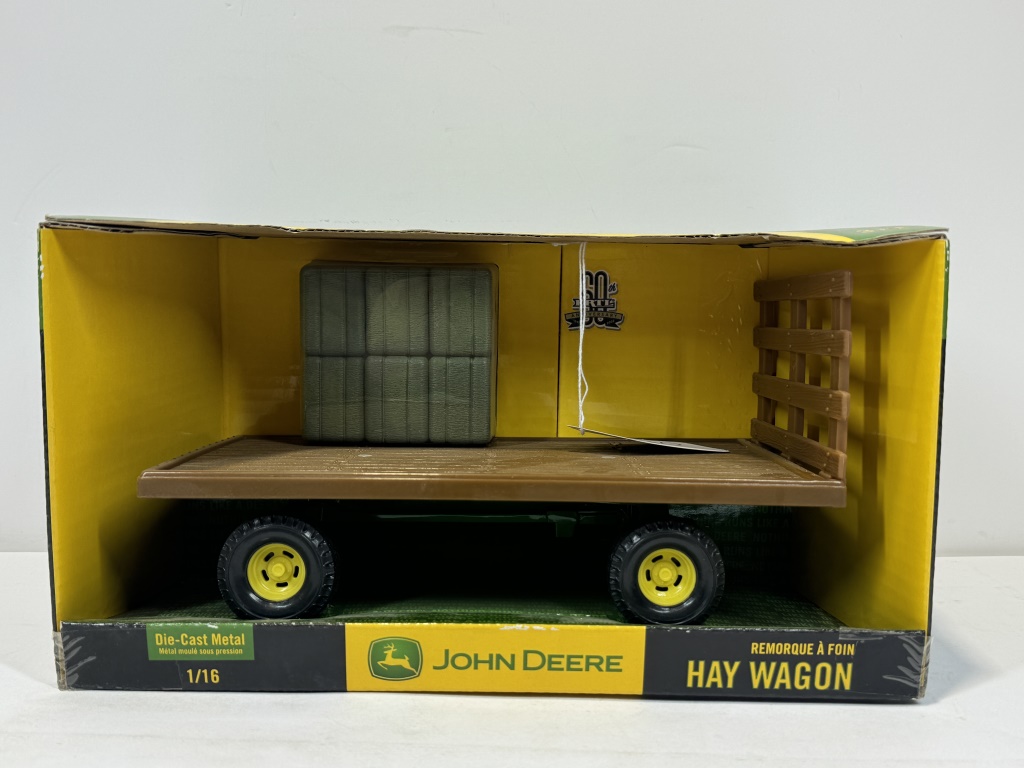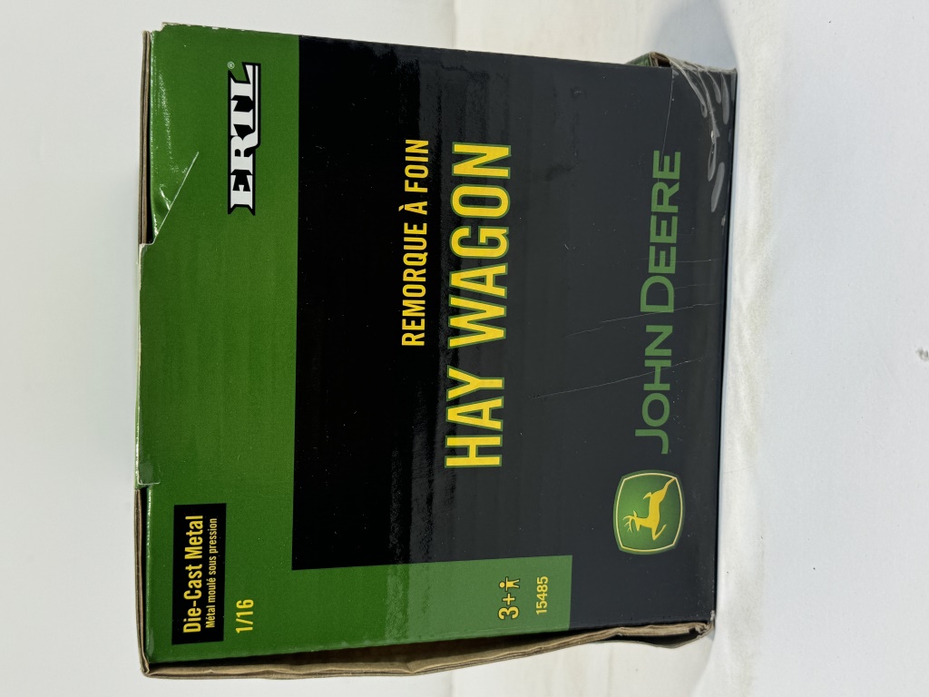 ERTL JOHN DEERE HAY WAGON & SMALL SQUARE BALES HAY, 1/16 SCALE DIECAST METAL NIB #15485