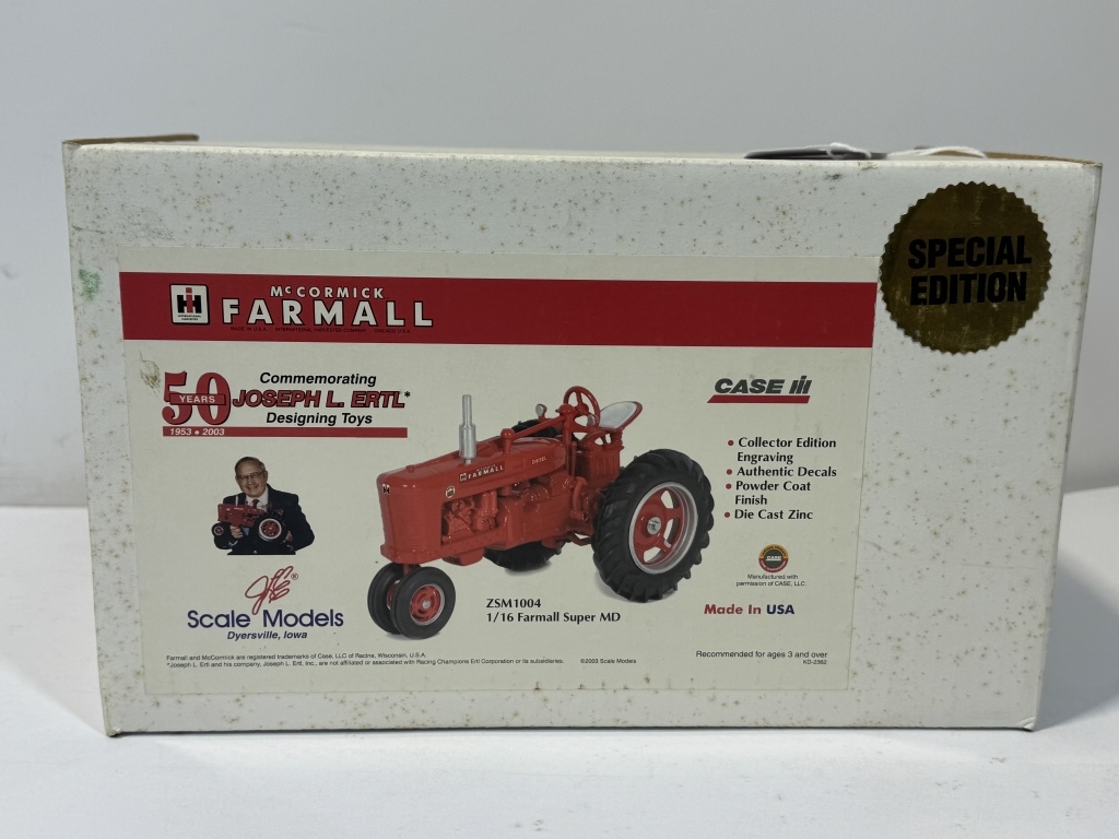 FARMALL SUPER MD TRACTOR 50 YEARS SPECIAL EDITION NIB DIECAST METAL 1/16 SCALE