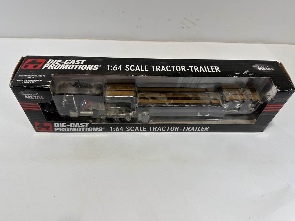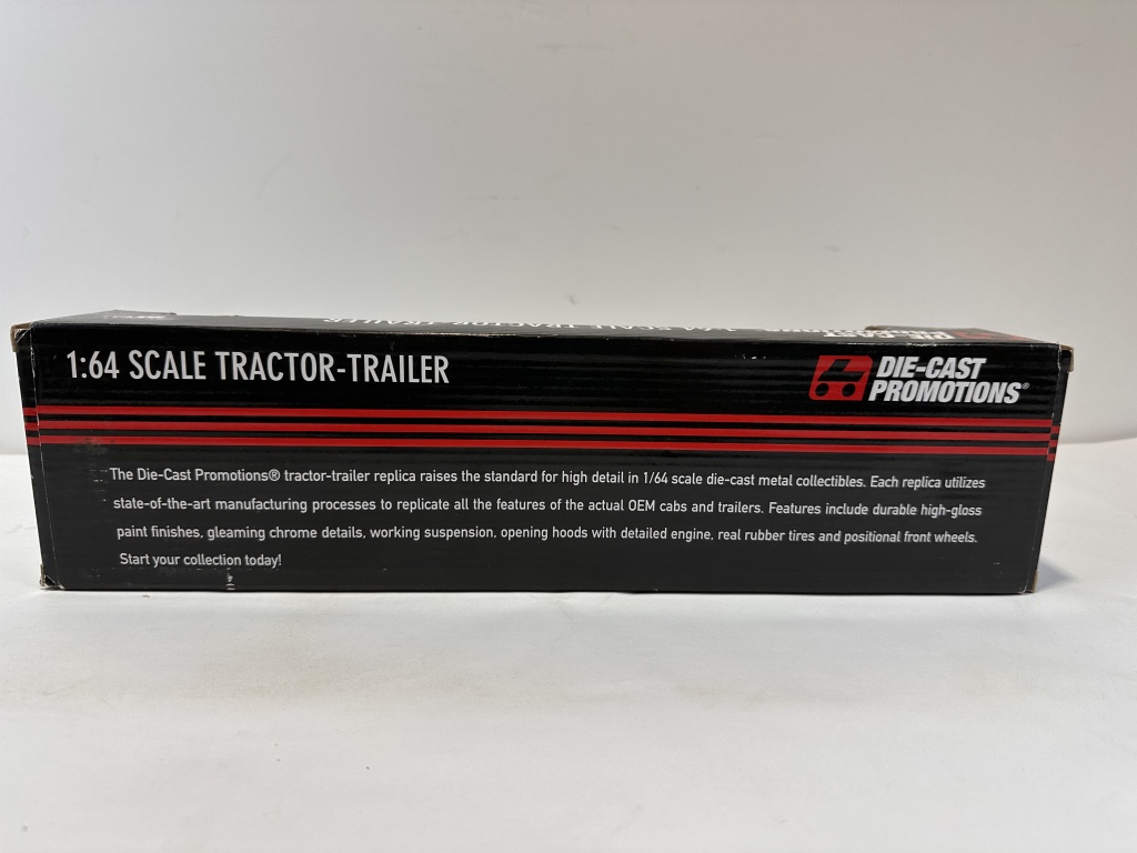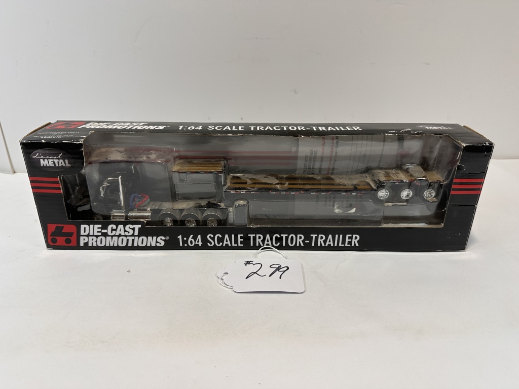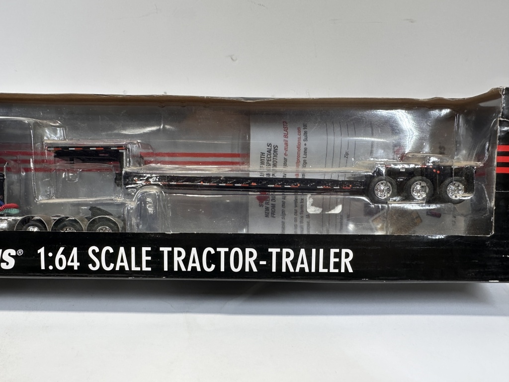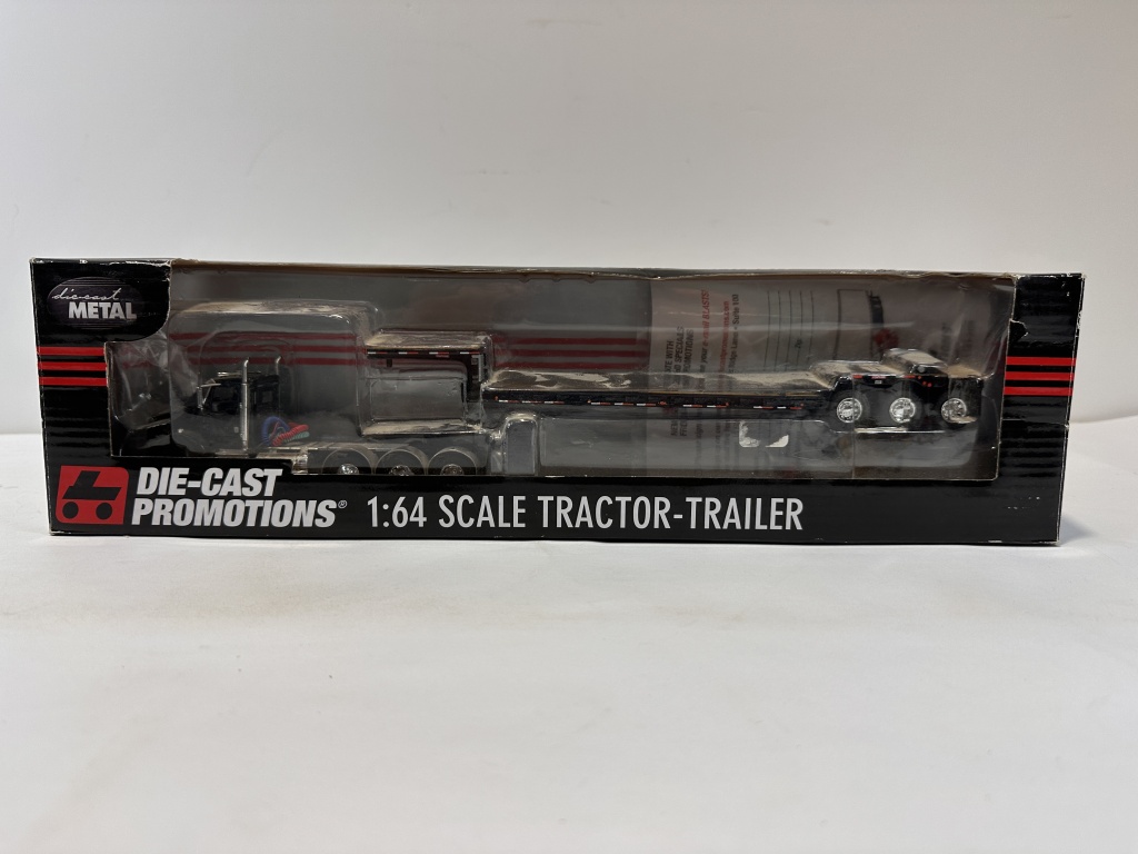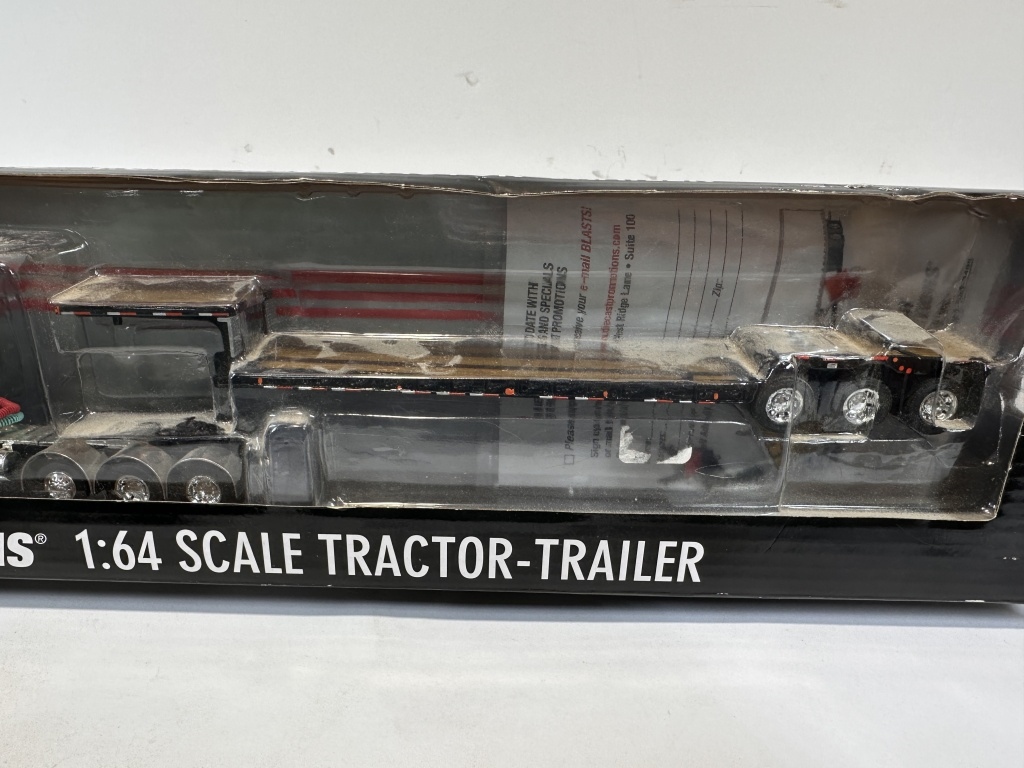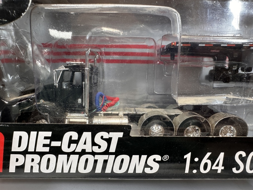 DI CAST DC BLACK KENWORTH T800 TRI-AXLE DAY CAB W/ FONTAINE RENEGADE LOW BOY TRAILER W/ FLIP AXLE ITEM NO. 33664