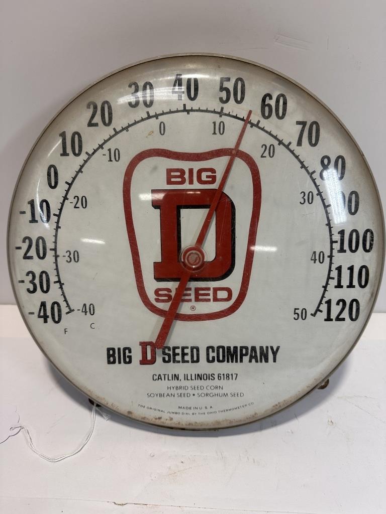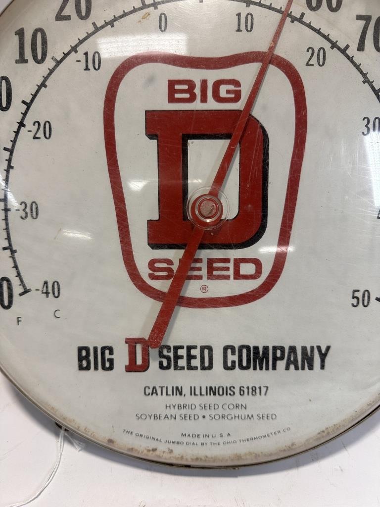 12″ ROUND THERMASTE BIG D SEED CATLIN ILLINOIS 61817, MADE IN THE USA THE ORIGINAL JUMBO DIAL BY THE OHIO THERMOMETER CO.