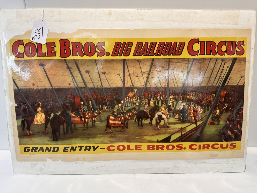 COLE BROS. BIG RAILROAD CIRCUS, GRAND ENTRY- COLE BROS. CIRCUS , IN LITHO IN U.S.A. 29″X16″