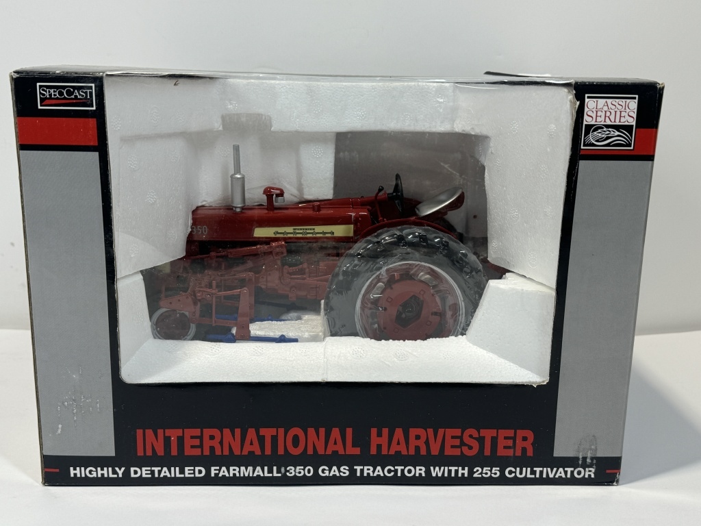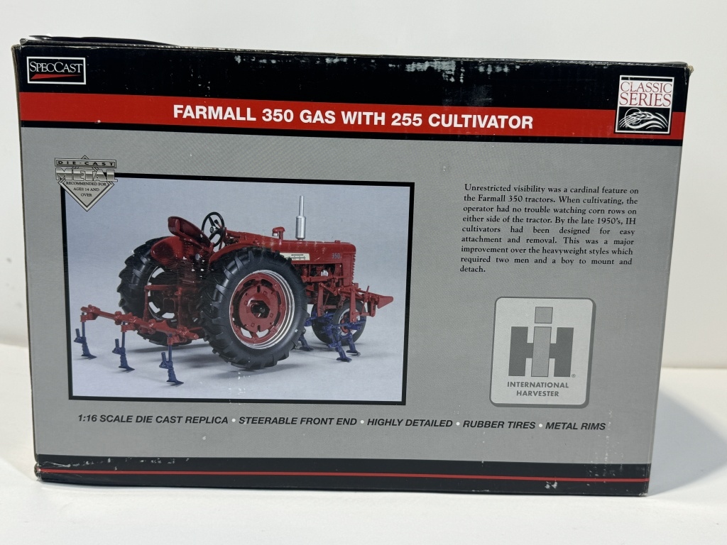 SPECCAST HIGHLY DETAILED INTERNATIONAL FARMALL MODEL 350 GAS TRACTOR WITH 255 CULTIVATOR NIB 1/16 SCALE DIECAST METAL #ZJD1593