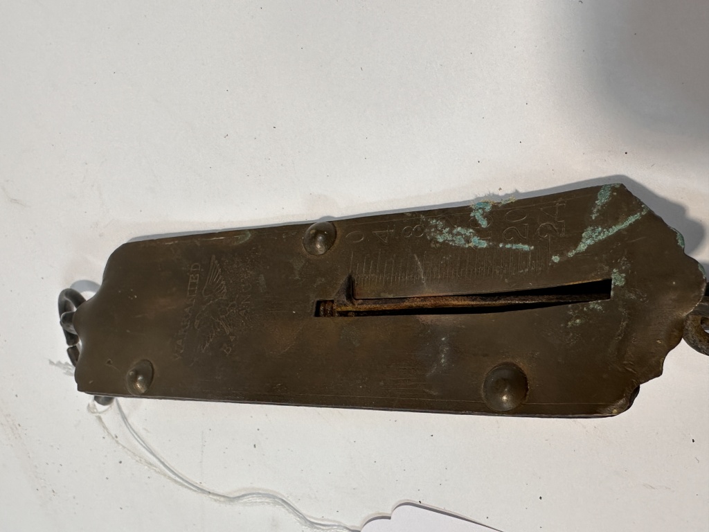 EARLY BRASS SCALE WARRANIED BALANCE, SCALES UP TO 24LBS 6″X2″