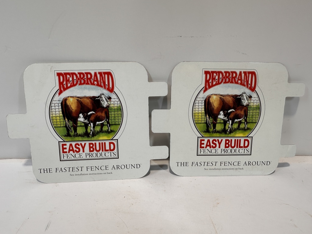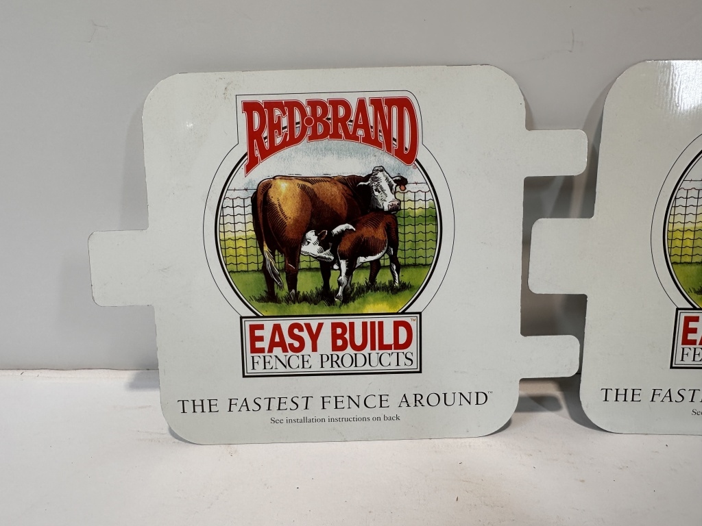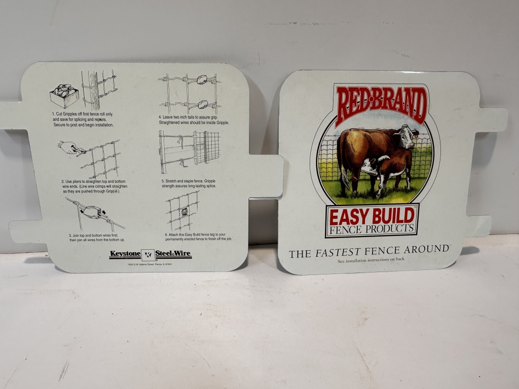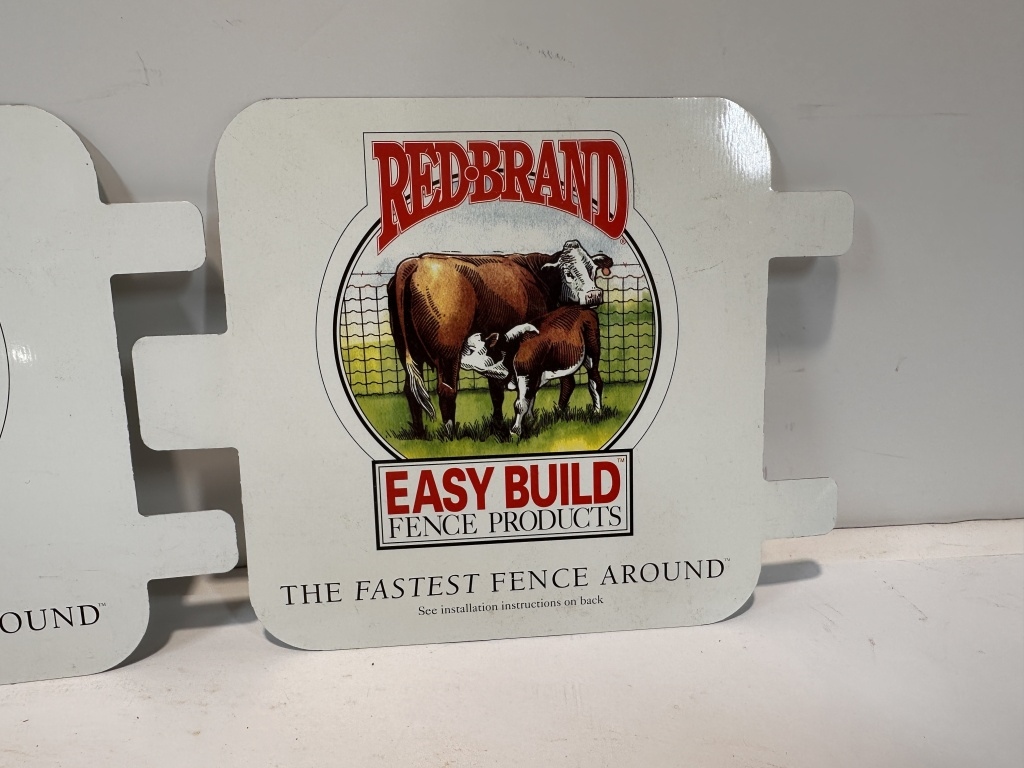 SET OF TWO, VINTAGE ORGINAL RED BRAND ADVERTISING FENCE MATERIALS FROM THE 1960’S-1970’S 8″X6″