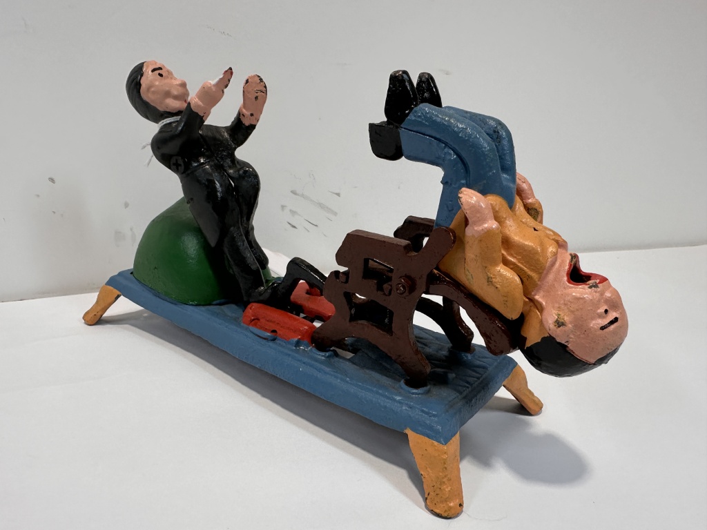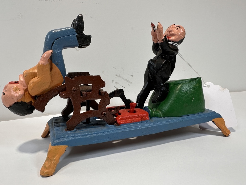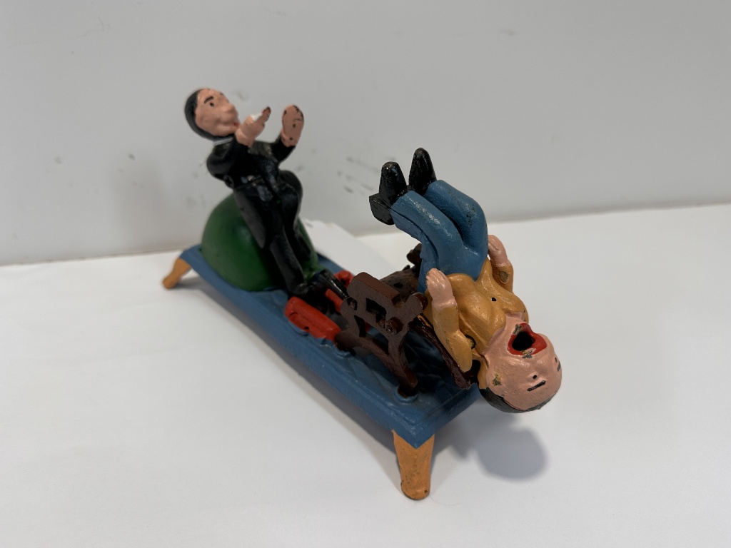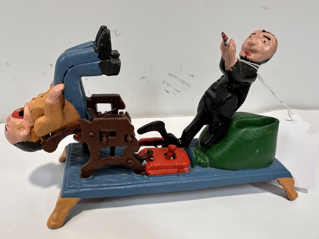 CAST IRON MECHANICAL DENTIST COIN BANK