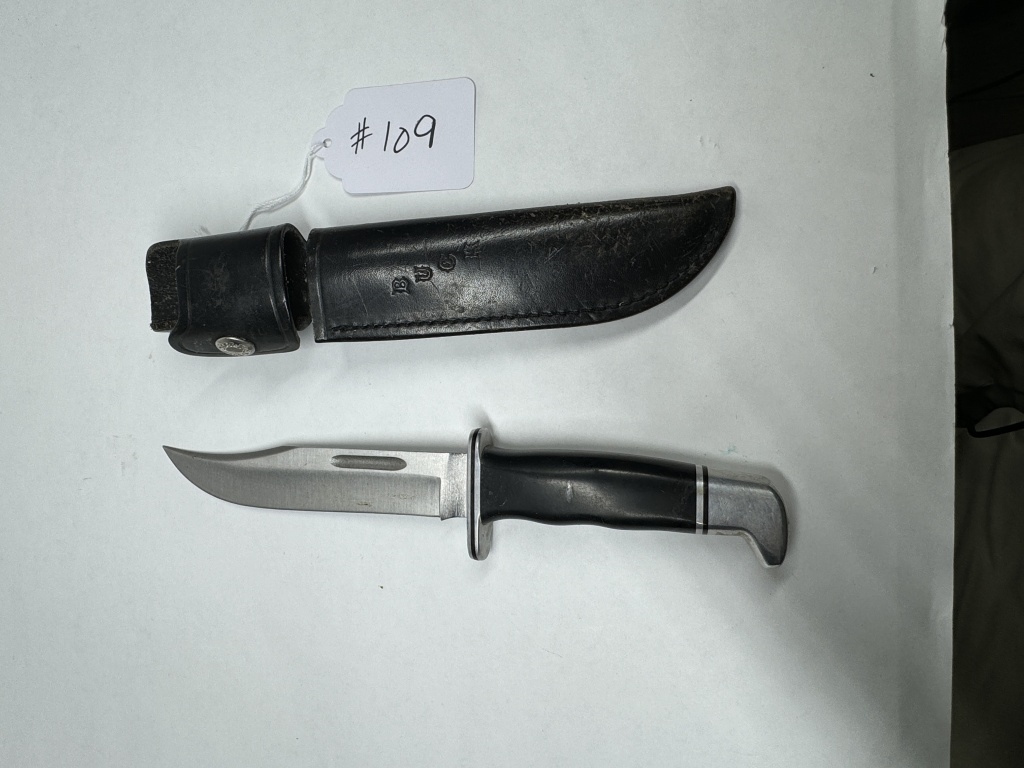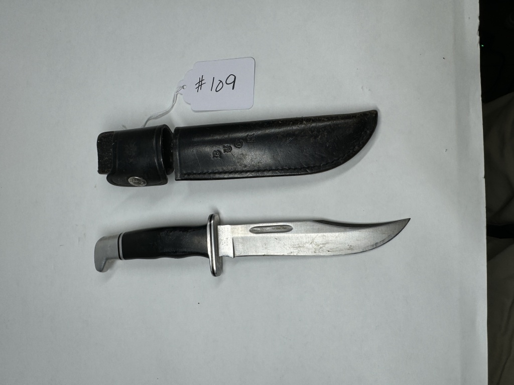 BUCK KNIFE WITH LEATHER SHEATH #119USA MADE