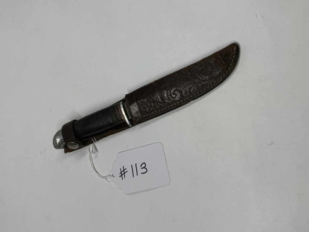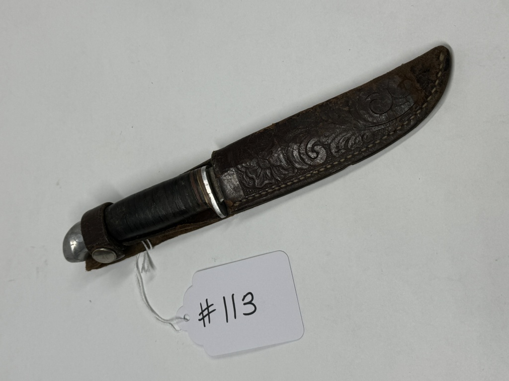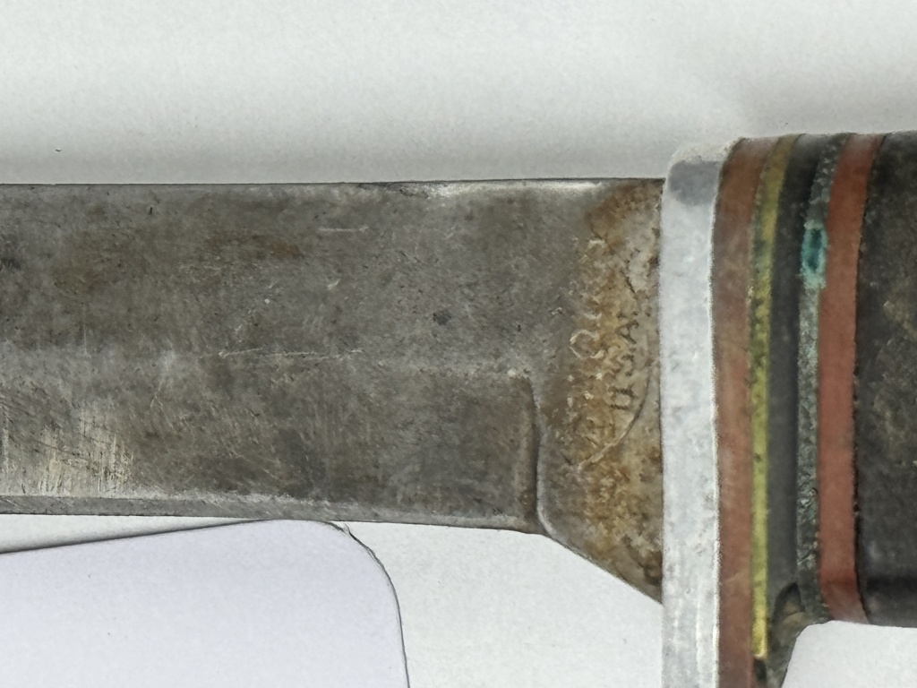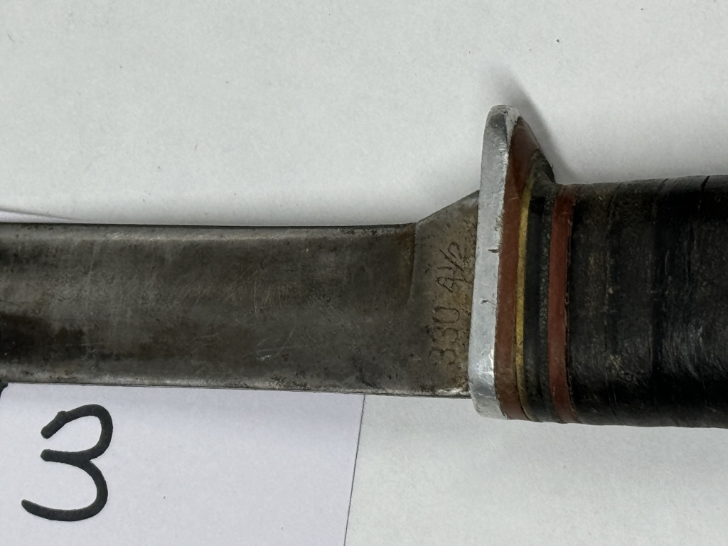 HUNTING KNIFE MADE IN USA DECORATIVE LEATHER SHEATH NUMBERS ON KNIFE 330 4 1/2