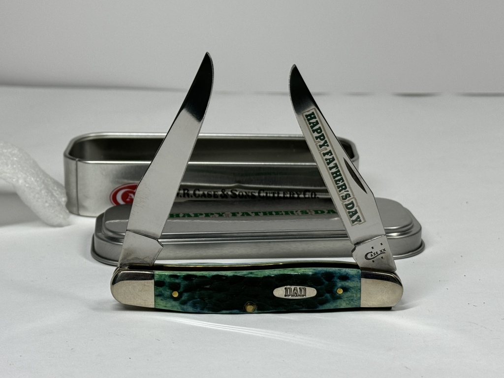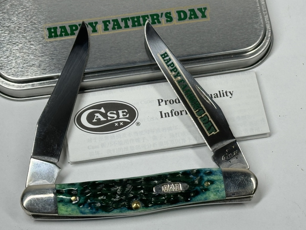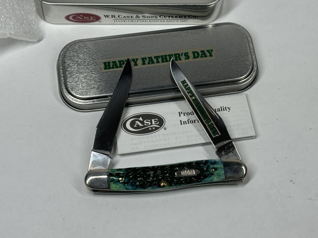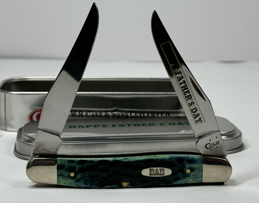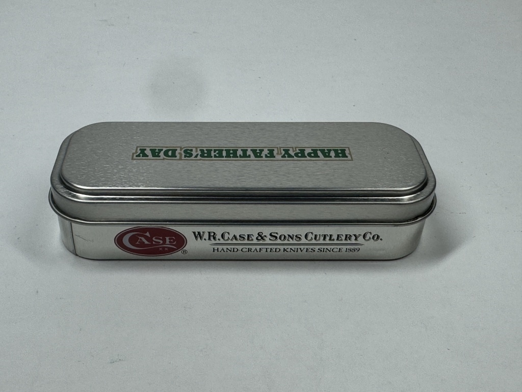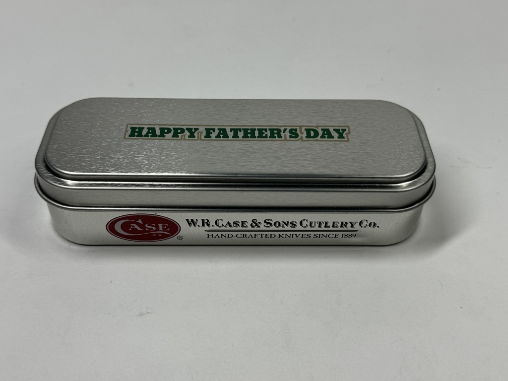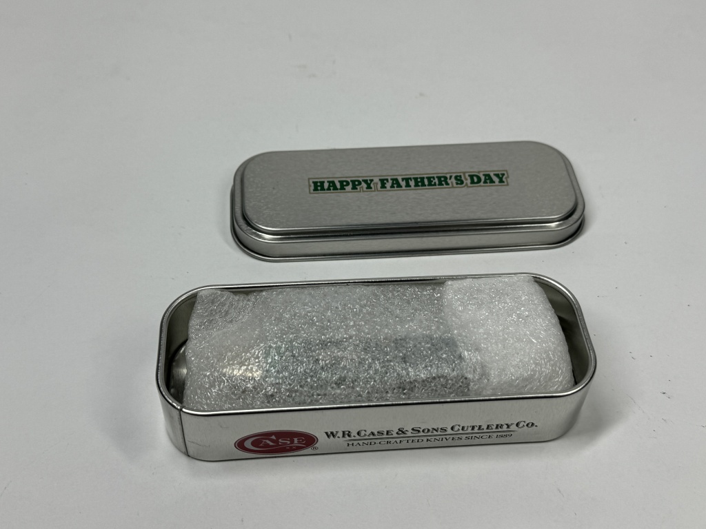 HAPPY FATHERS DAY KNIFE CASECASE XX DAD ENGRAVED ON THE SIDE INCLUDES TIN CAN IN PICTURE