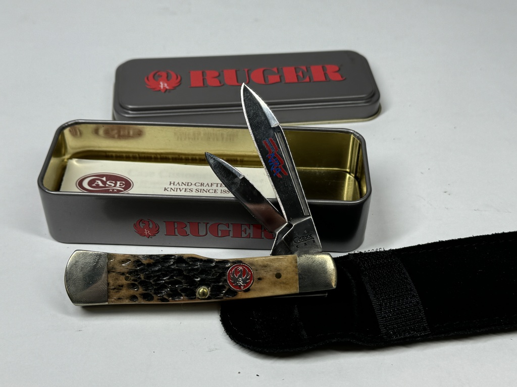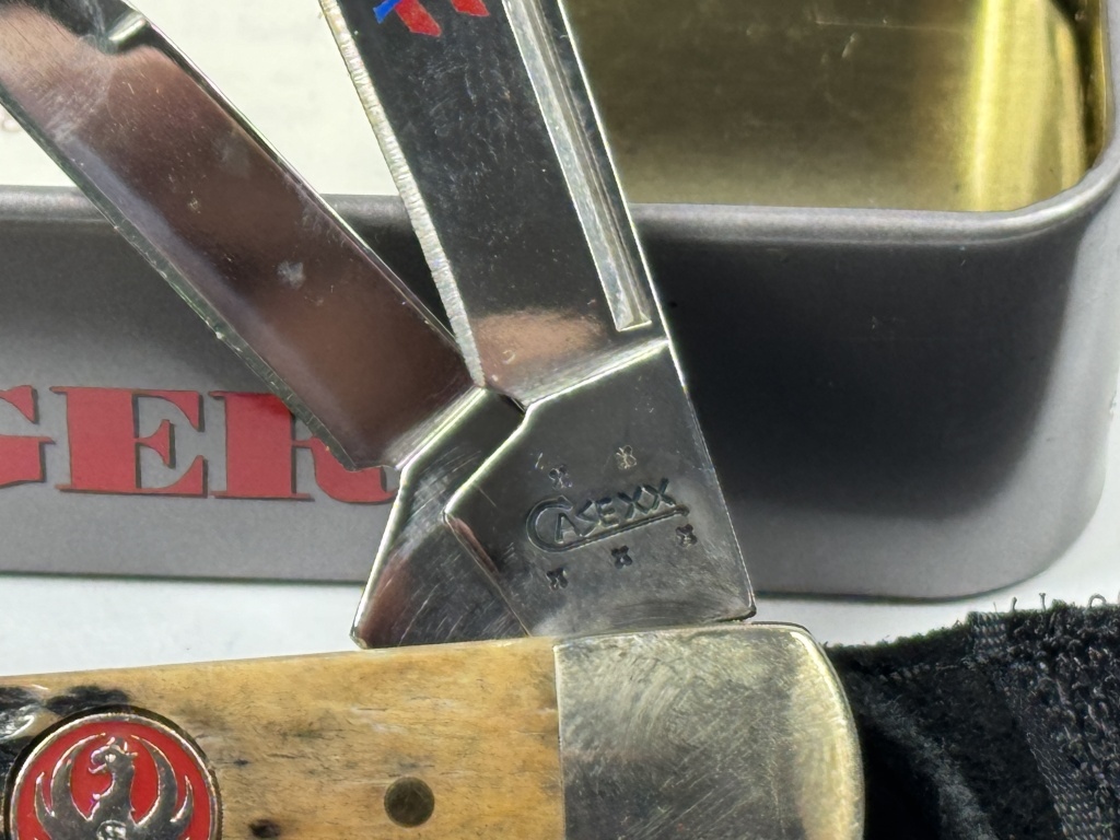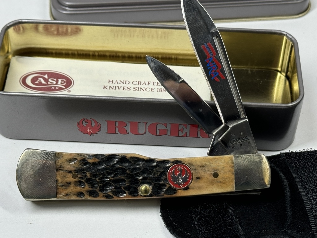 RUGER CASE KNIFE“FRIENDS OF NRA” ON SIDE OF BLADE CASE XXINCLUDES TIN IN PICTURE