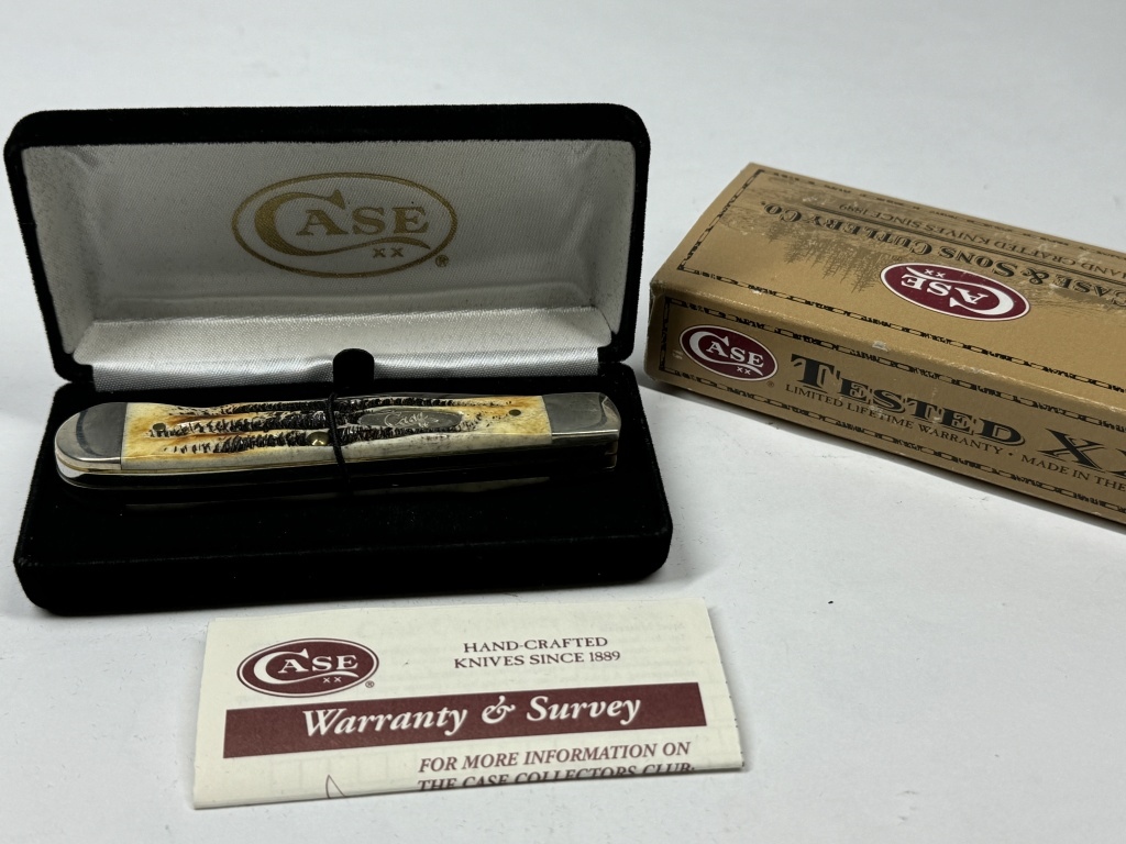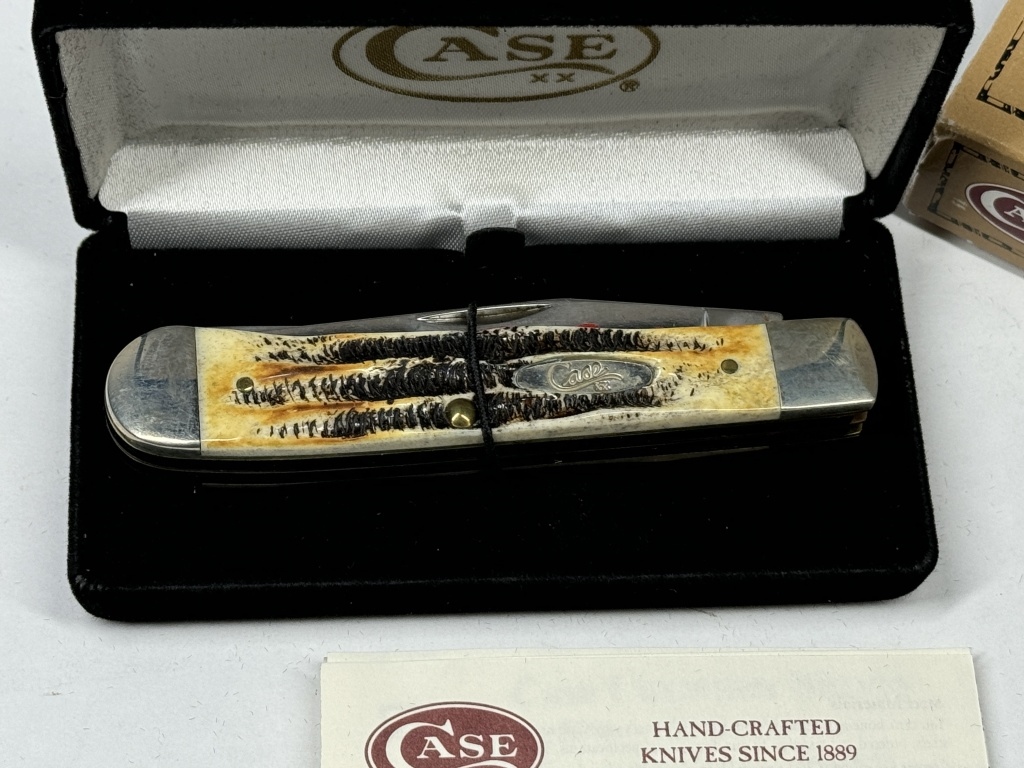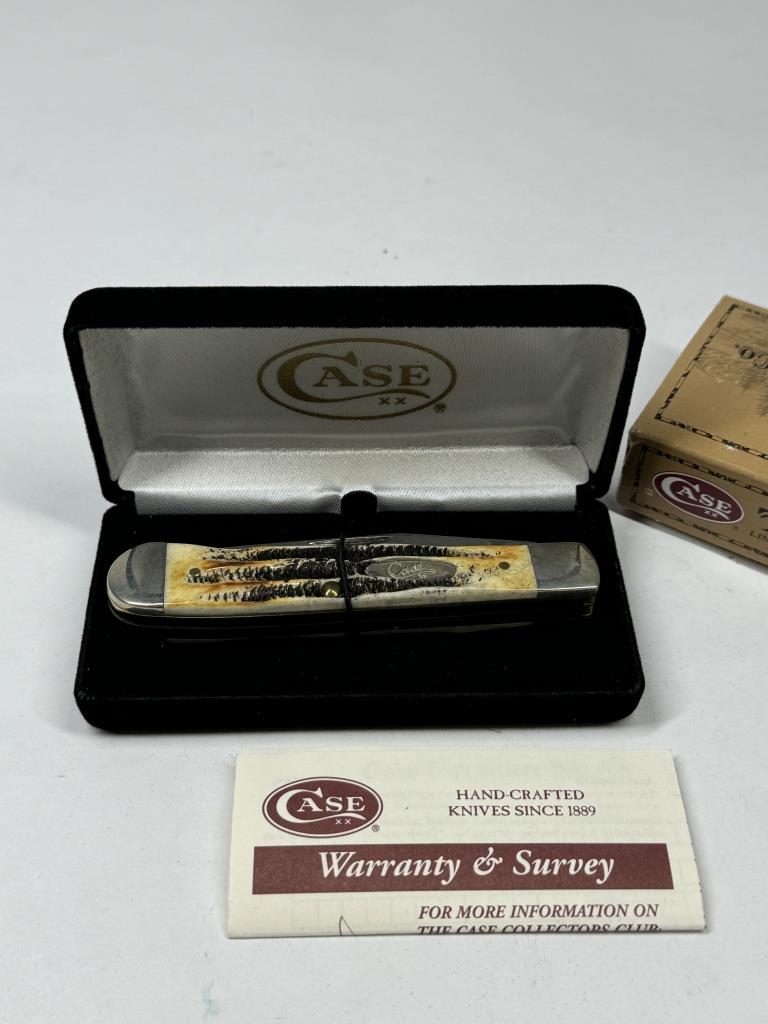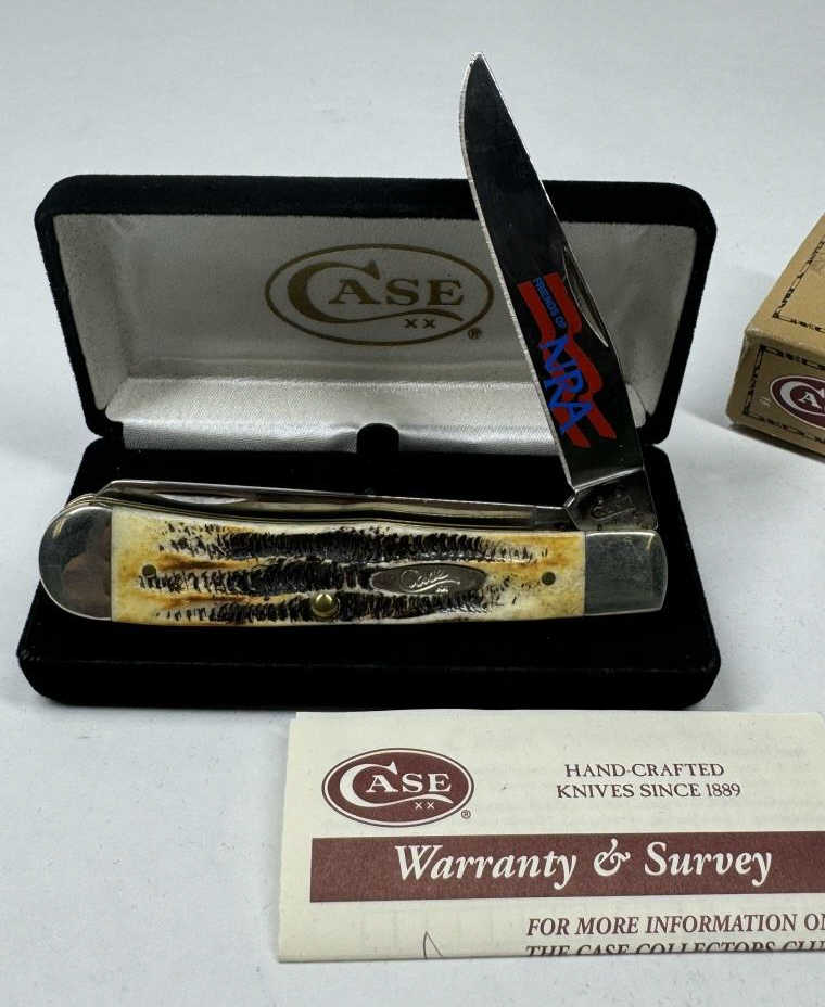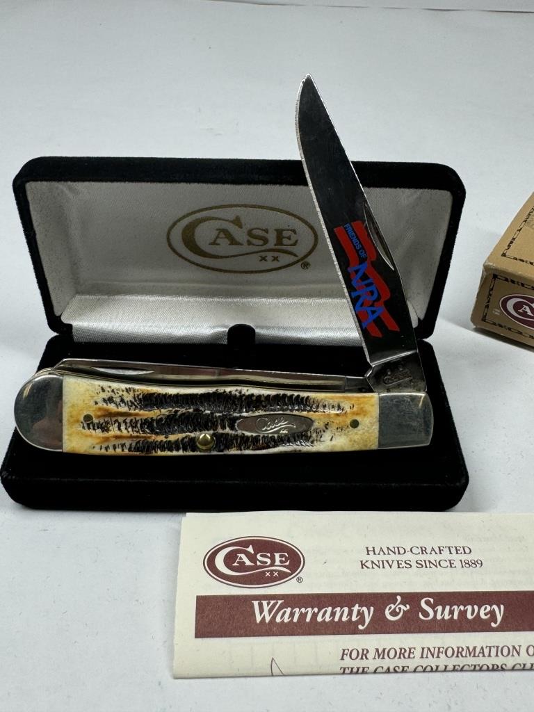 TRAPPER BONESTAG CASE KNIFE NRA ENGRAVED ON BLADE INCLUDES ORGINAL BOX AND CASEITEM NUMBER 05196